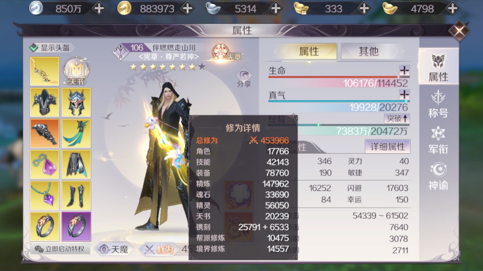 纪念一下,宪章45万,精炼17套,服务器94天。目前冲了40