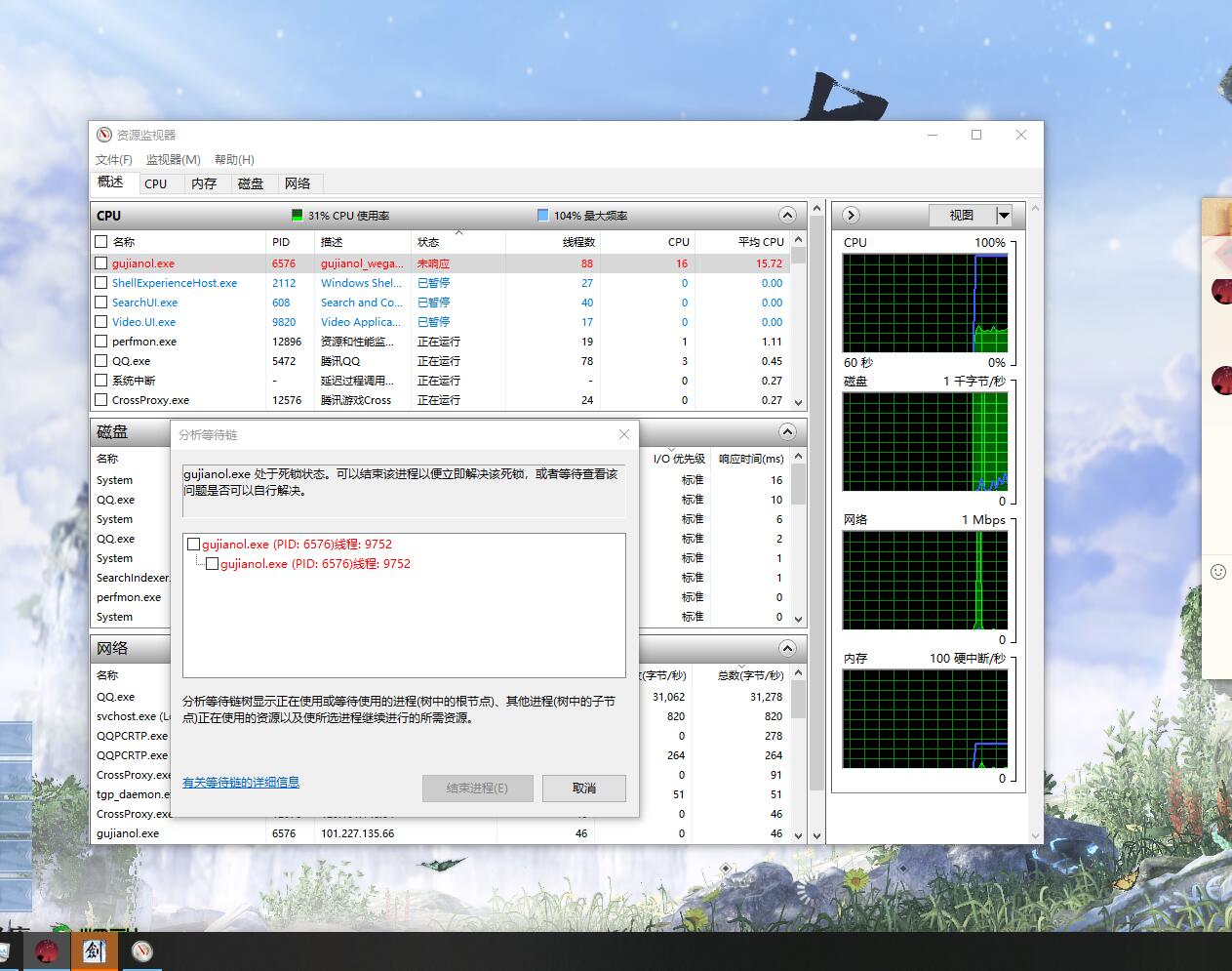 【具体描述】一进登陆界面就直接卡死不动 进程显示未响应