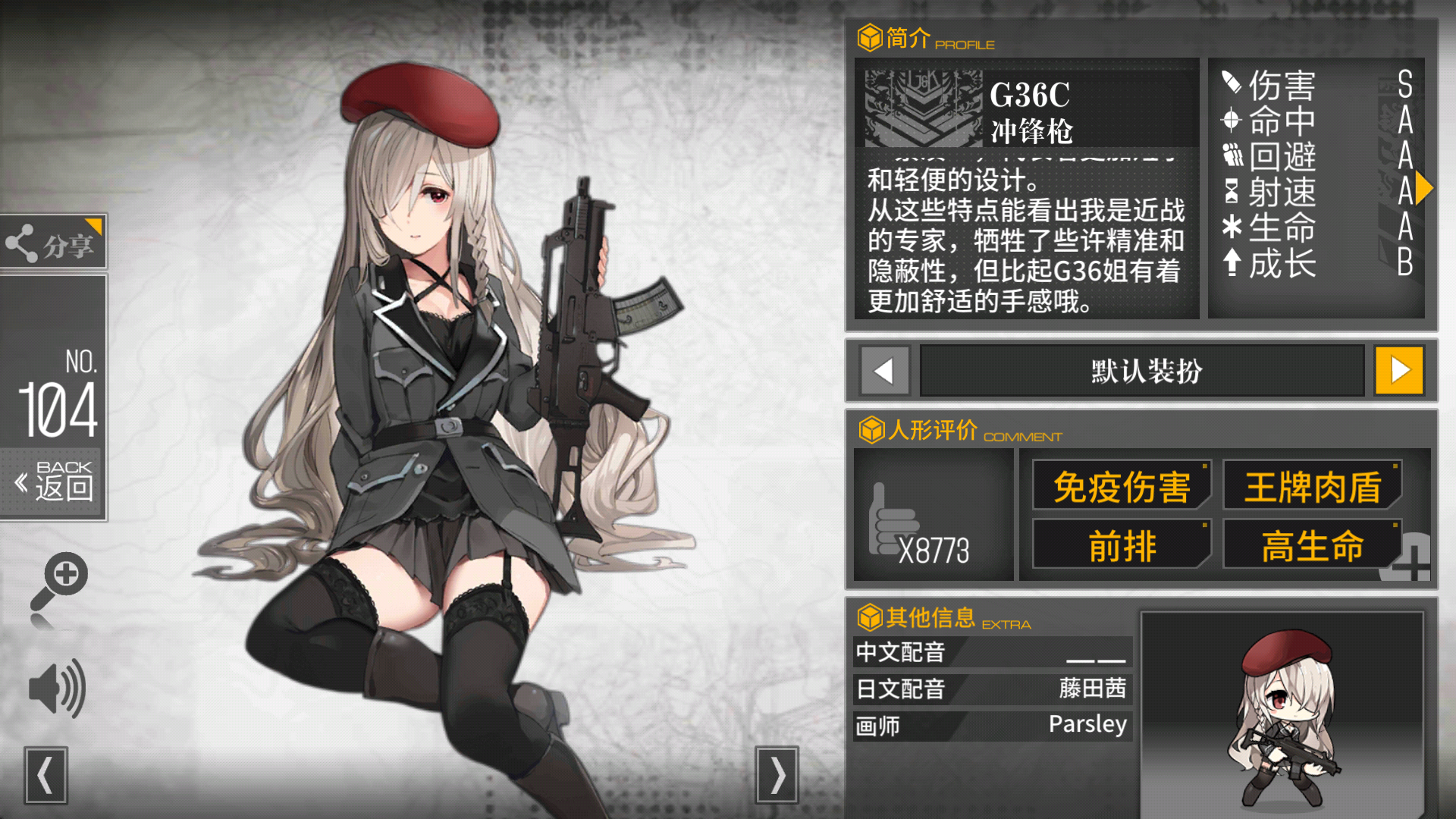 ),意外建出来了个陌(piao)生(liang)的smg,这立绘太戳我了,而且配音还是我7都塞拉菲姆的cv!主练她可以嘛!顺便问一下她和G36是什么关系