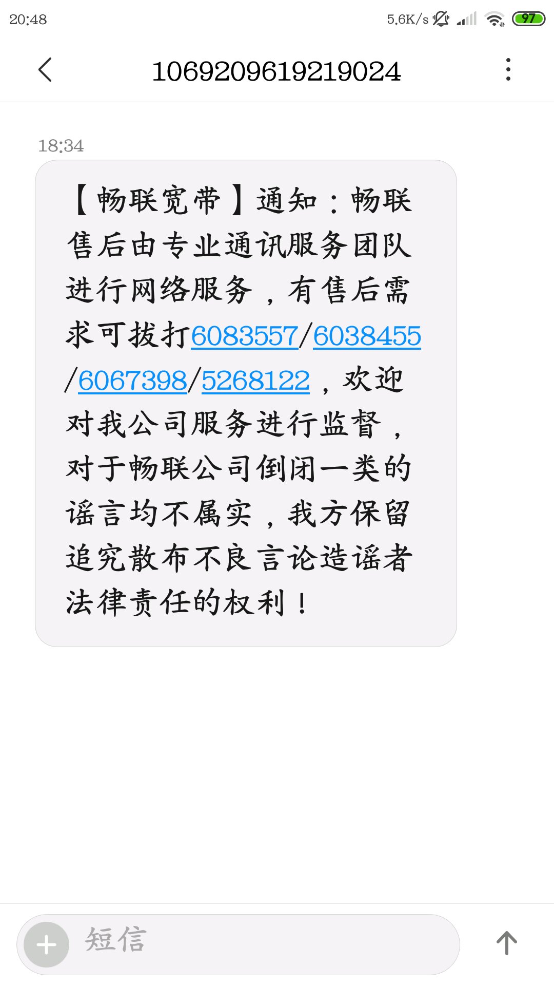 谁说畅联黄了,今天居然收到这样的短信