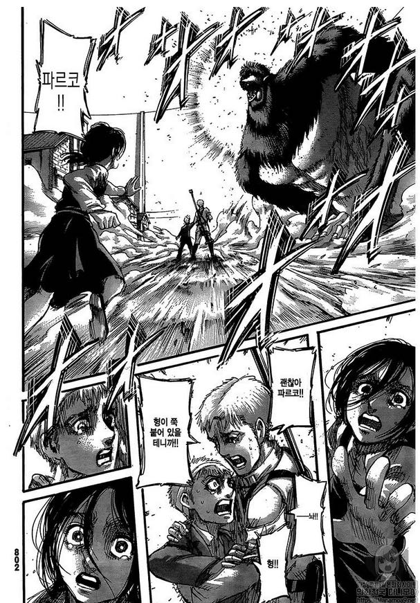 我觉得这跟我第一次看女巨团灭利威尔班一样**。。。区别是这次死得人比那次多多了,艾伦还被爆头了