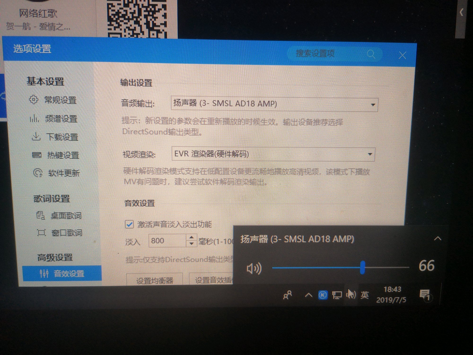 要在音乐软件的设置里改播放设备的输出方式