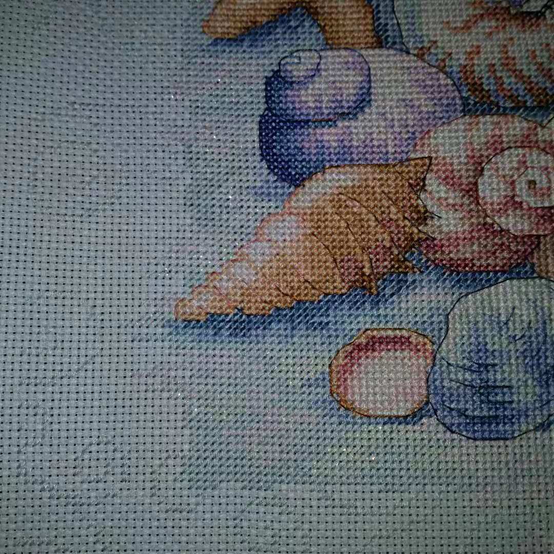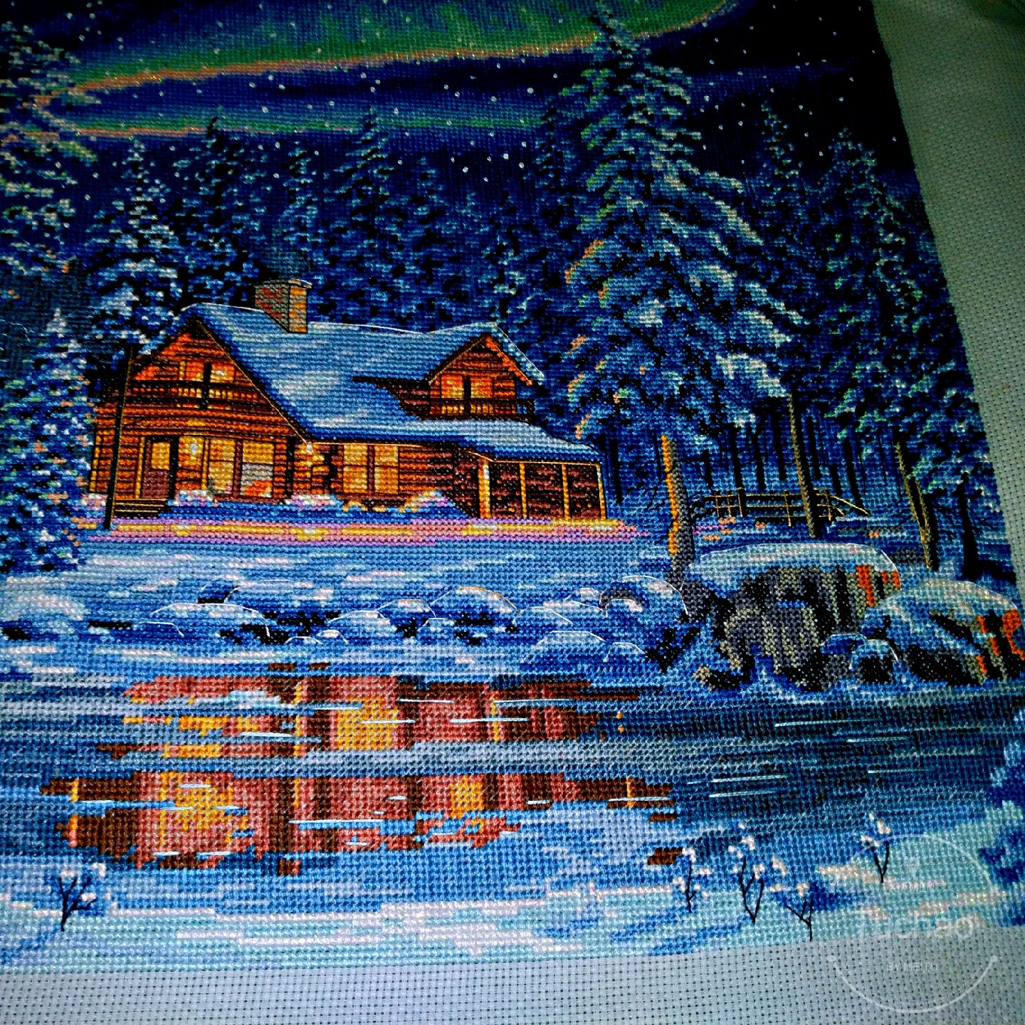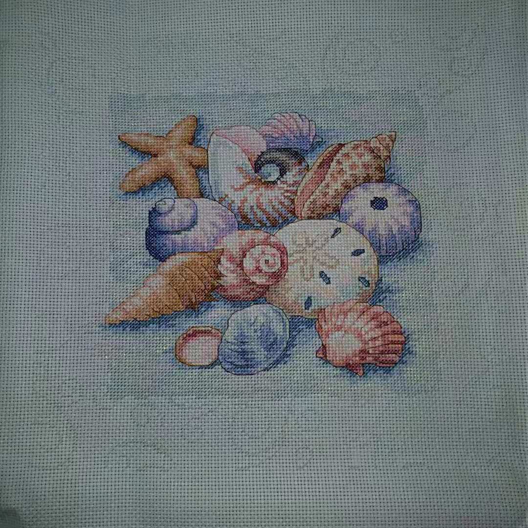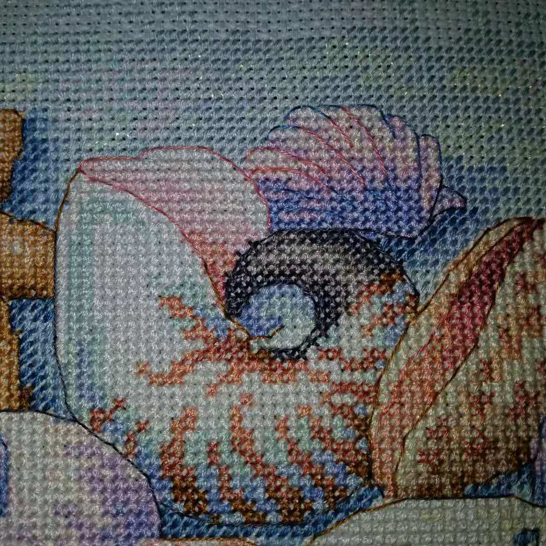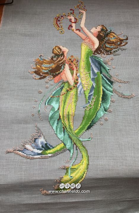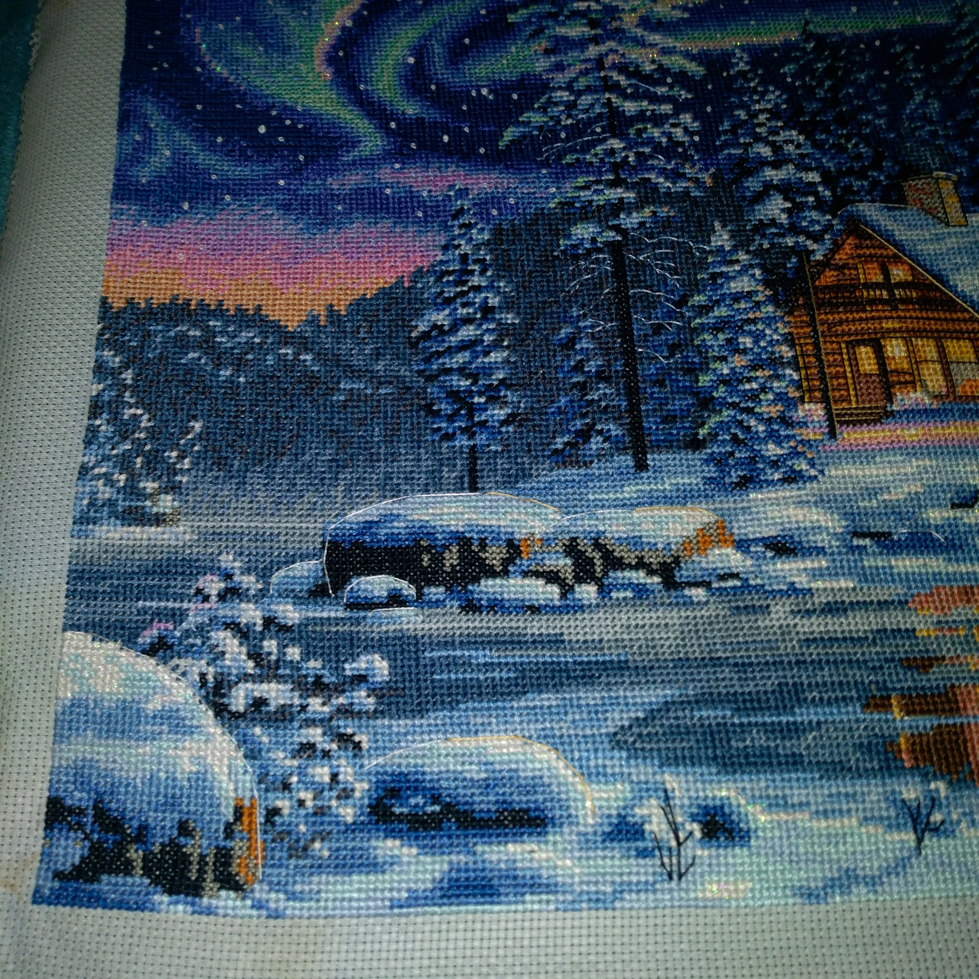 dim35212 一开始在论坛看到它的成品就被极光深深吸引了 然而绣它的过程是最艰难的 中间经历了开店搬家 图纸也丢了一张 大量的六股半针加上布下水后极软 折磨的不行 但是最后成品的时候真的觉得一切都值了