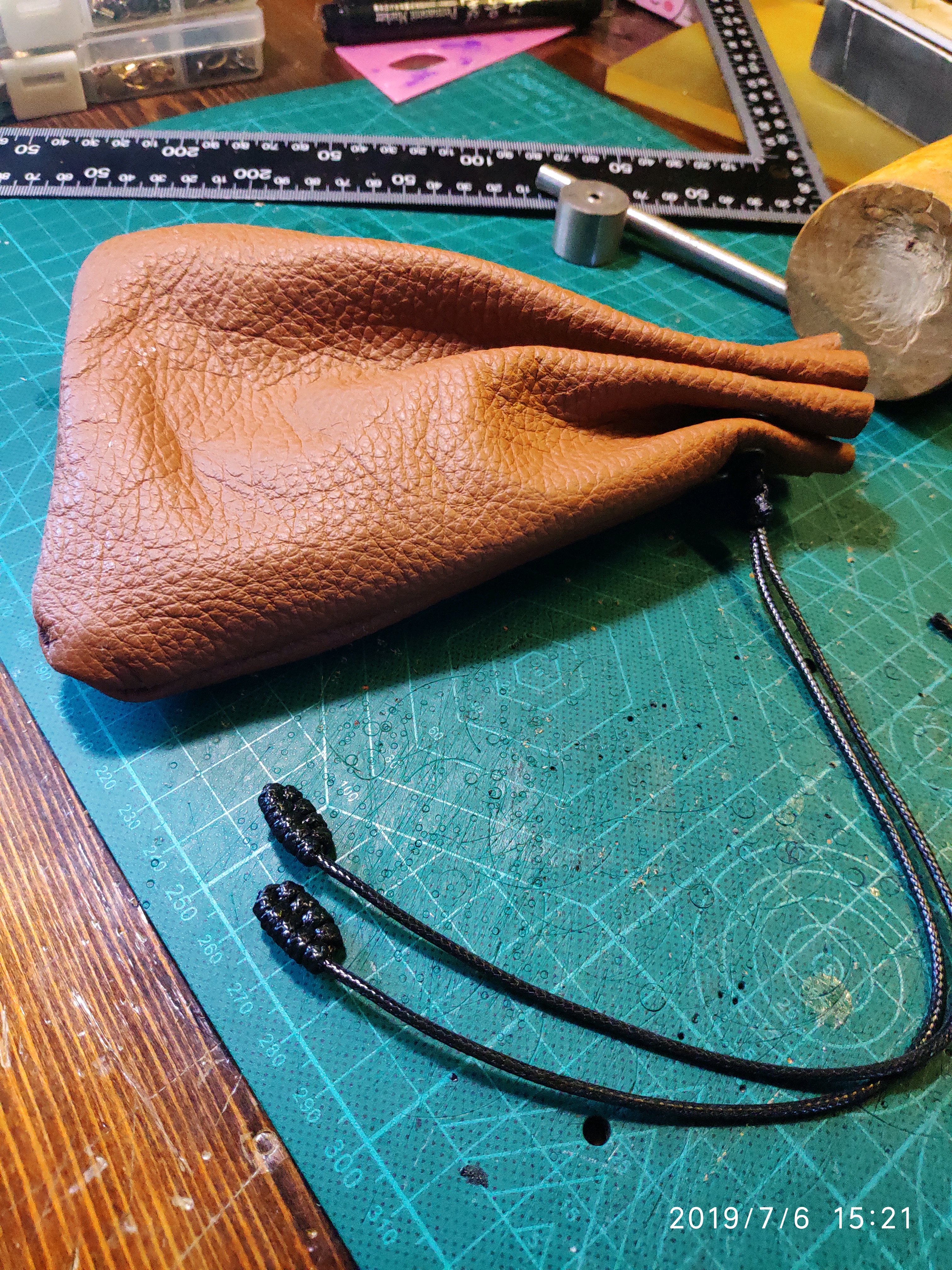 周六在家DIY收纳包打火石,发现荔枝纹软皮一张,做个简易收纳包