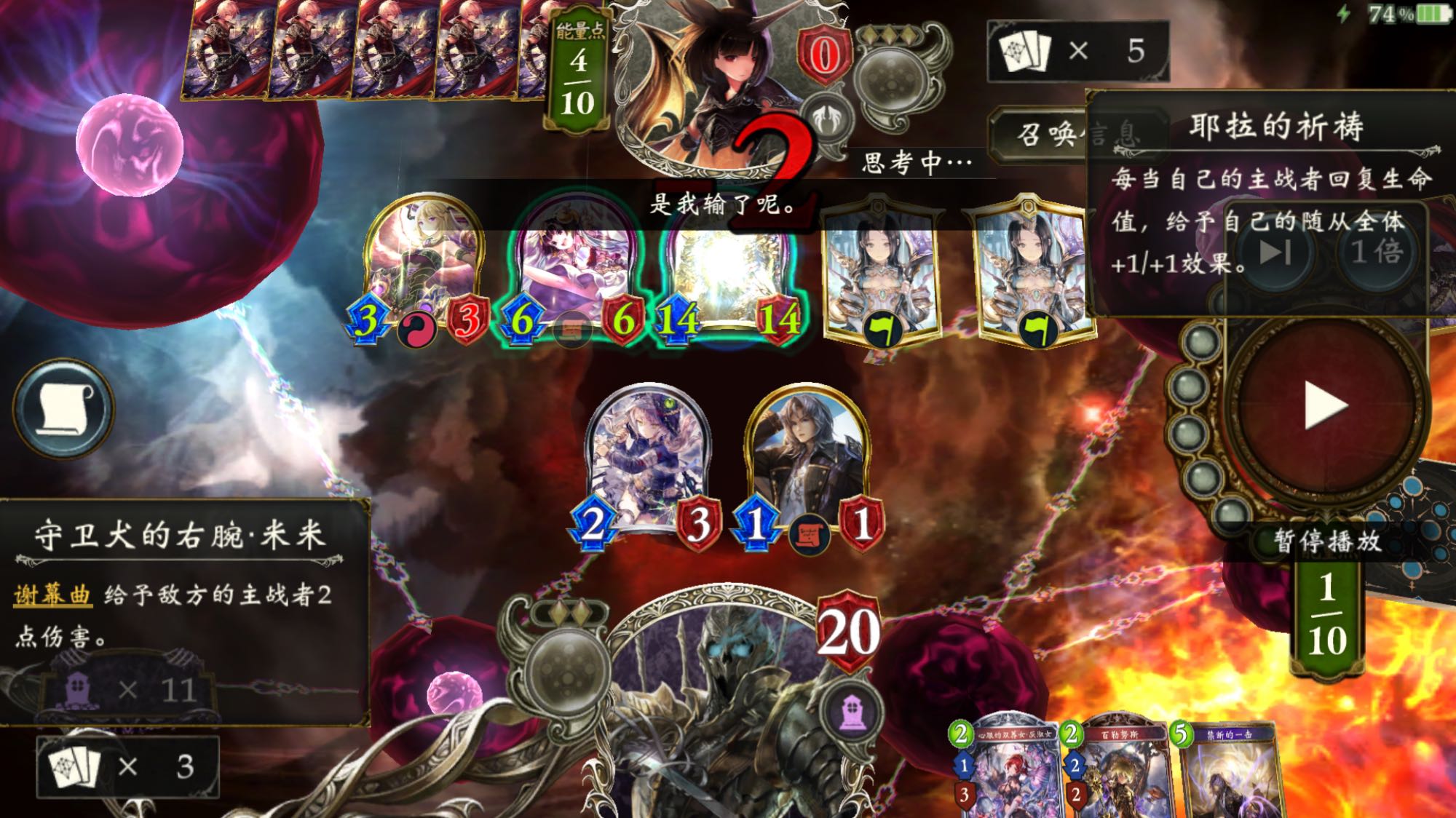 想起来有一把打复仇对面有公爵 我5血9费激流拉冥府 然后葬送弹了自己5血