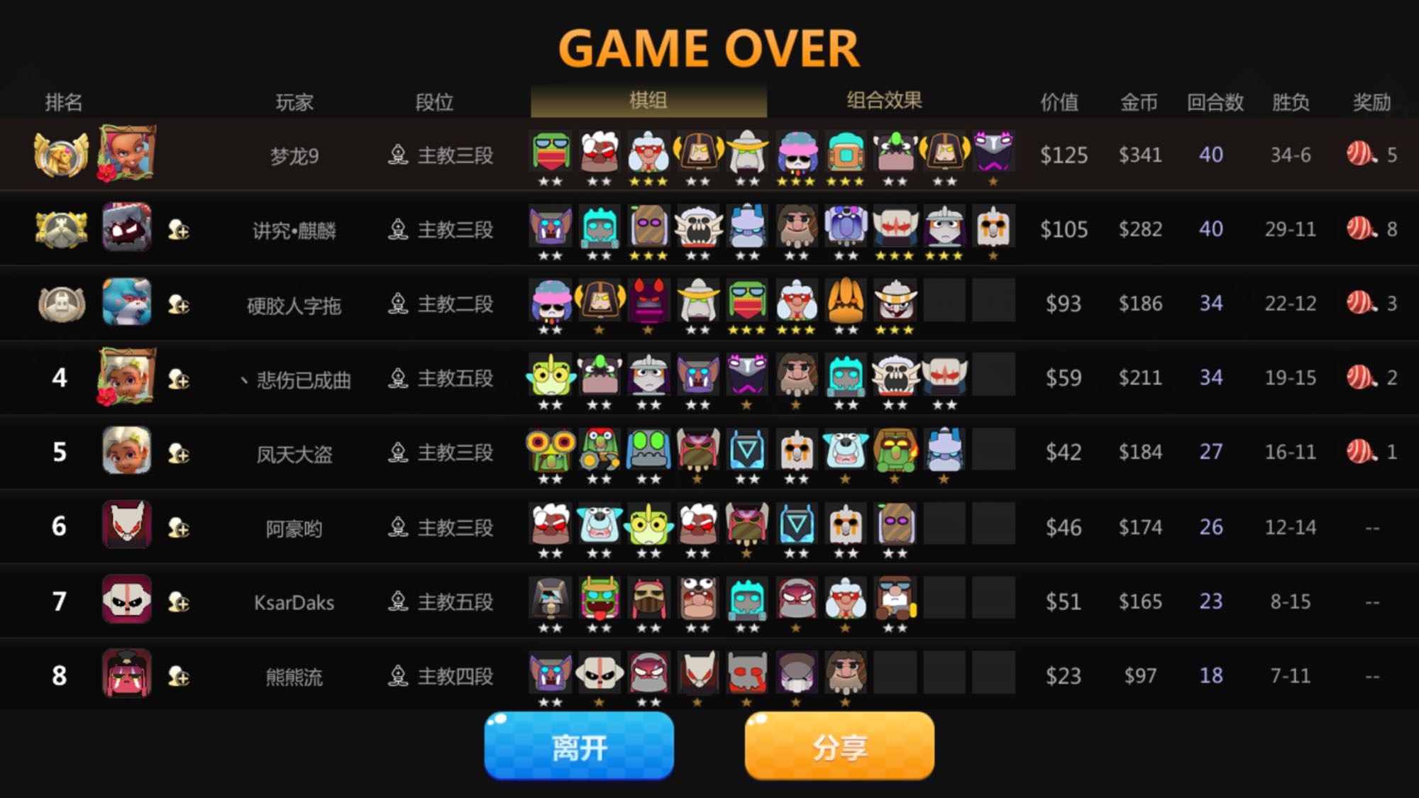 刺客流还是很强的,最后打不过第2的龙骑了,还好前期累积血量高,冰川帮我干了他