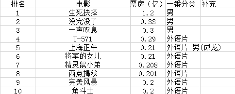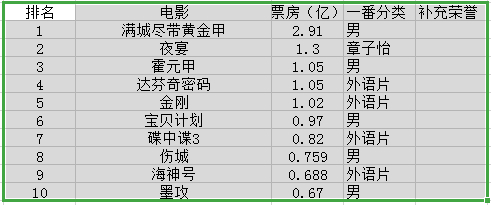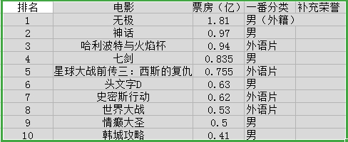 规则:以每年中国票房前10为条件 只计入一番作品(争议一番 平番也可)