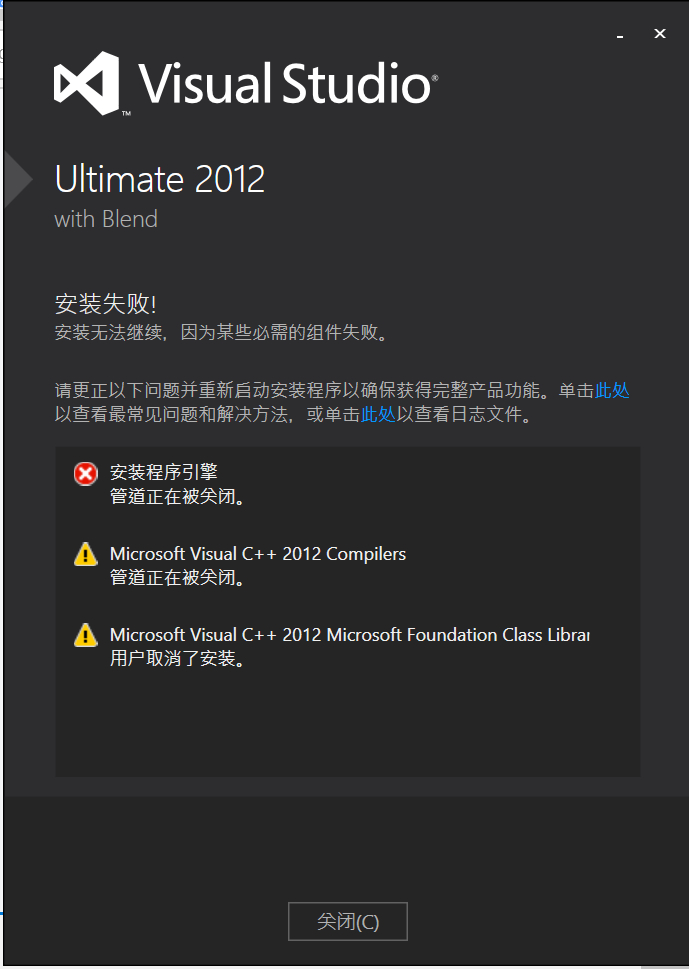 去年成功的安装了vs2012,但是昨天电脑出现了一些问题,不完全的恢复一下系统(卸载部分软件,文件保留),现在安装了好几遍都不行出现下图