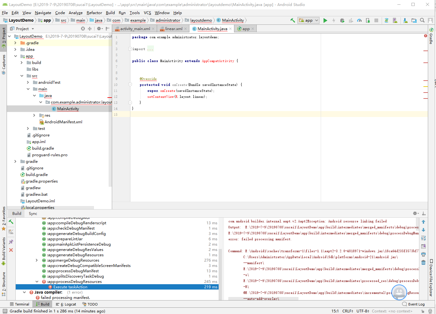 创建了一个项目用的是Android5.0API21报错是什么原因