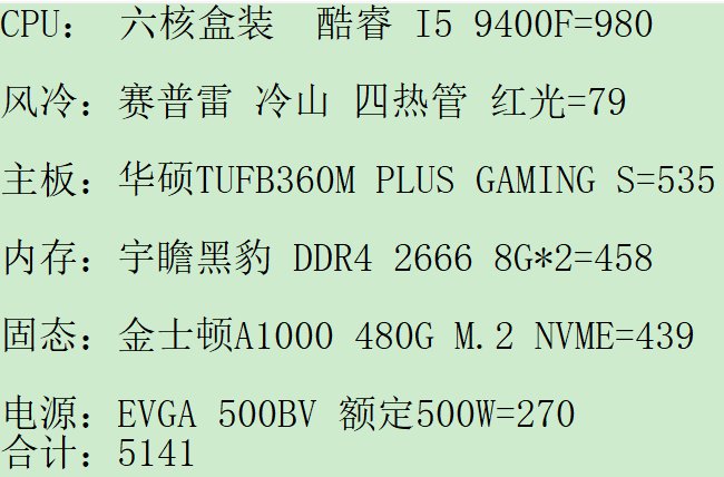 *CPU:6核散 I5 9400F =950元*