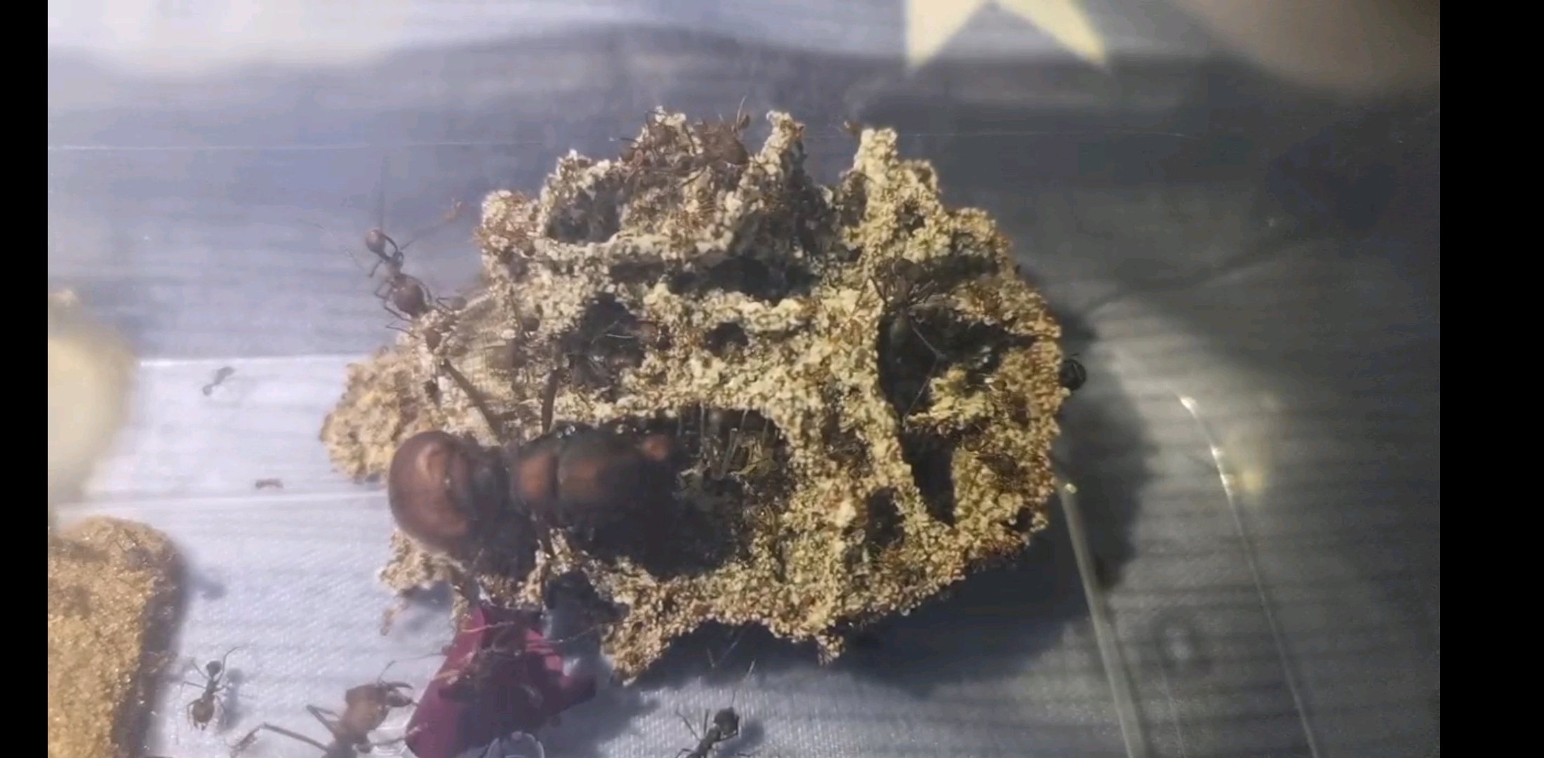 因为不放心,加上蚂蚁就在手边,所以我基本上是随时盯着它们的,半小时甚至十几分钟就看一次,反正这蚂蚁又不怕光又不怕震的。(事实证明前期随时盯着还是有好处)