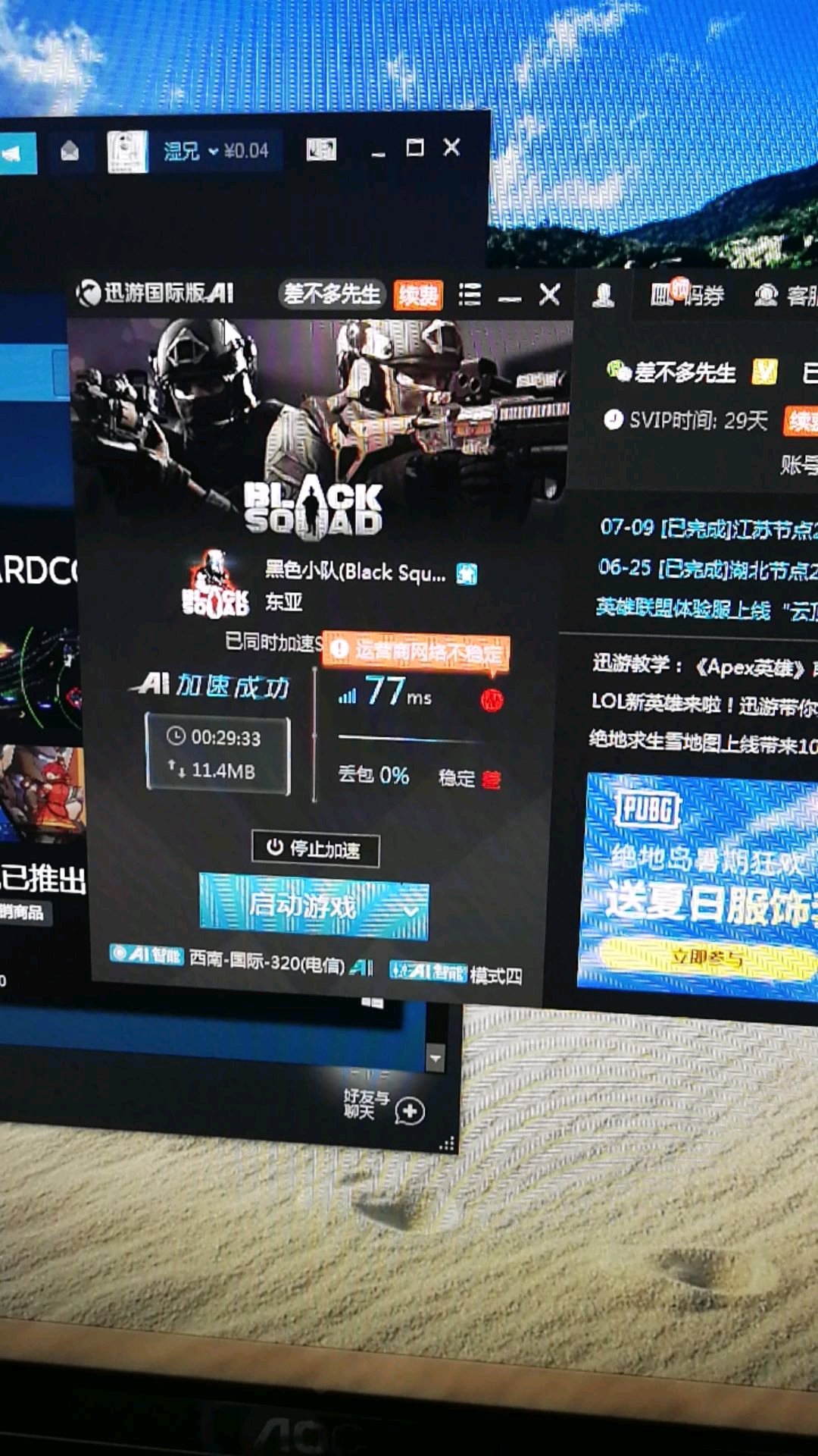 迅游最近确实有点问题,貌似网络不稳定,我开迅游进去都是黄色的信号。延迟从差到好依次是 红-黄-绿-蓝