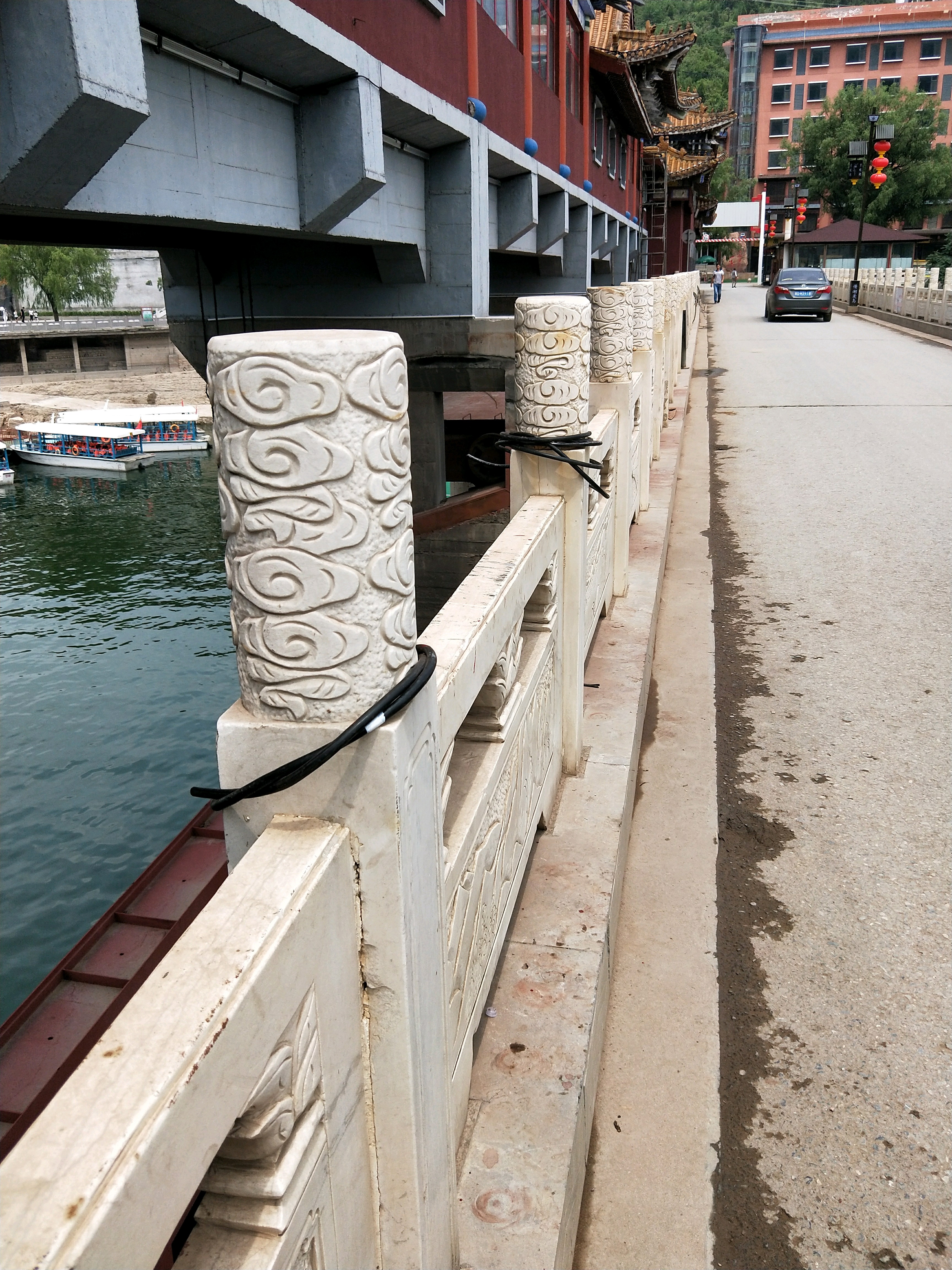 1:刚到京娘湖的桥上就看到外表裸露的电线,而且直接裸露金属线,如果有小朋友或者不注意的人手摸到或者不小心碰到就会发生触电。