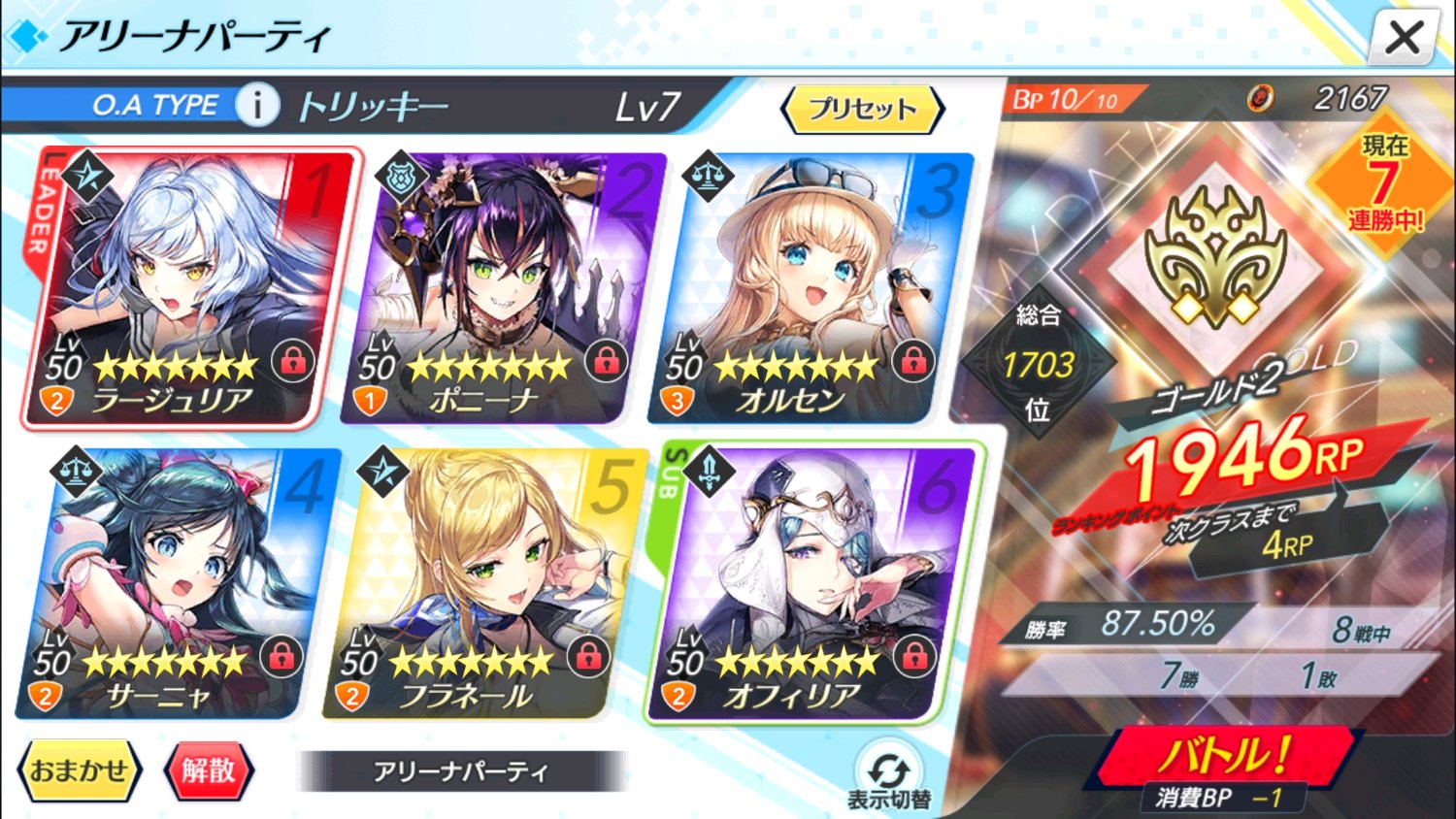我的阵容打对面很舒服,有黑色双马尾天克绿骑士