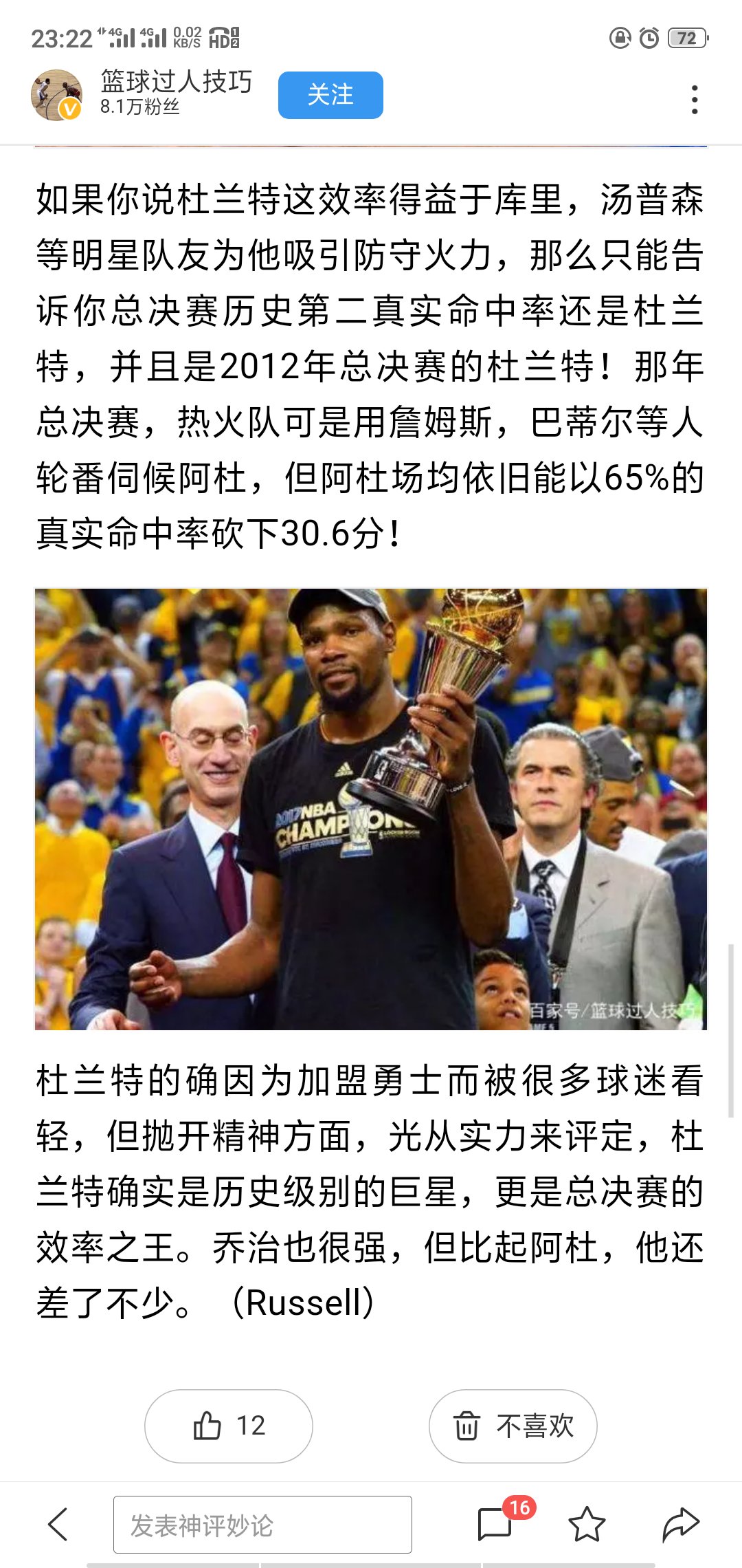 怎么评价杜杜兰特两次单核夺冠