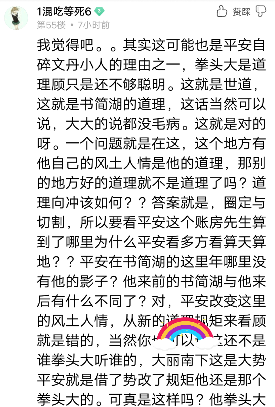 顾璨不是大俪,是陈平安的弟弟,陈平安才会要管,不希望他立身不正(无规矩保护)迟早蠢死。陈平安也说过如果顾璨不是顾璨,而是不相关的人,遇见了一剑杀之,没遇见便与他无关也不会偏要去管。行走江湖,生死自负。但人孰能无情,到底亲疏有别。陈平安做的,是不背本心(不杀顾璨)的情况下改正错误,偿还世道,顺应本心(有规矩不草菅人命) 。这样,没有对不起自己,没有对不起亲人朋友,也没有对不起保护世人的社会。从大义,客观的第三者角度来说没有什么牺牲是理所当然的。换而言之,活着非常重要,上层管理者们(有钱有权有势有力即,有能力为社会作出贡献的人)命当然重要,但不代表下层的人的命就卑微低贱。陈平安在书简湖篇不断想到他和顾璨原本都来自小巷,及不希望顾璨变成他讨厌的那种人。