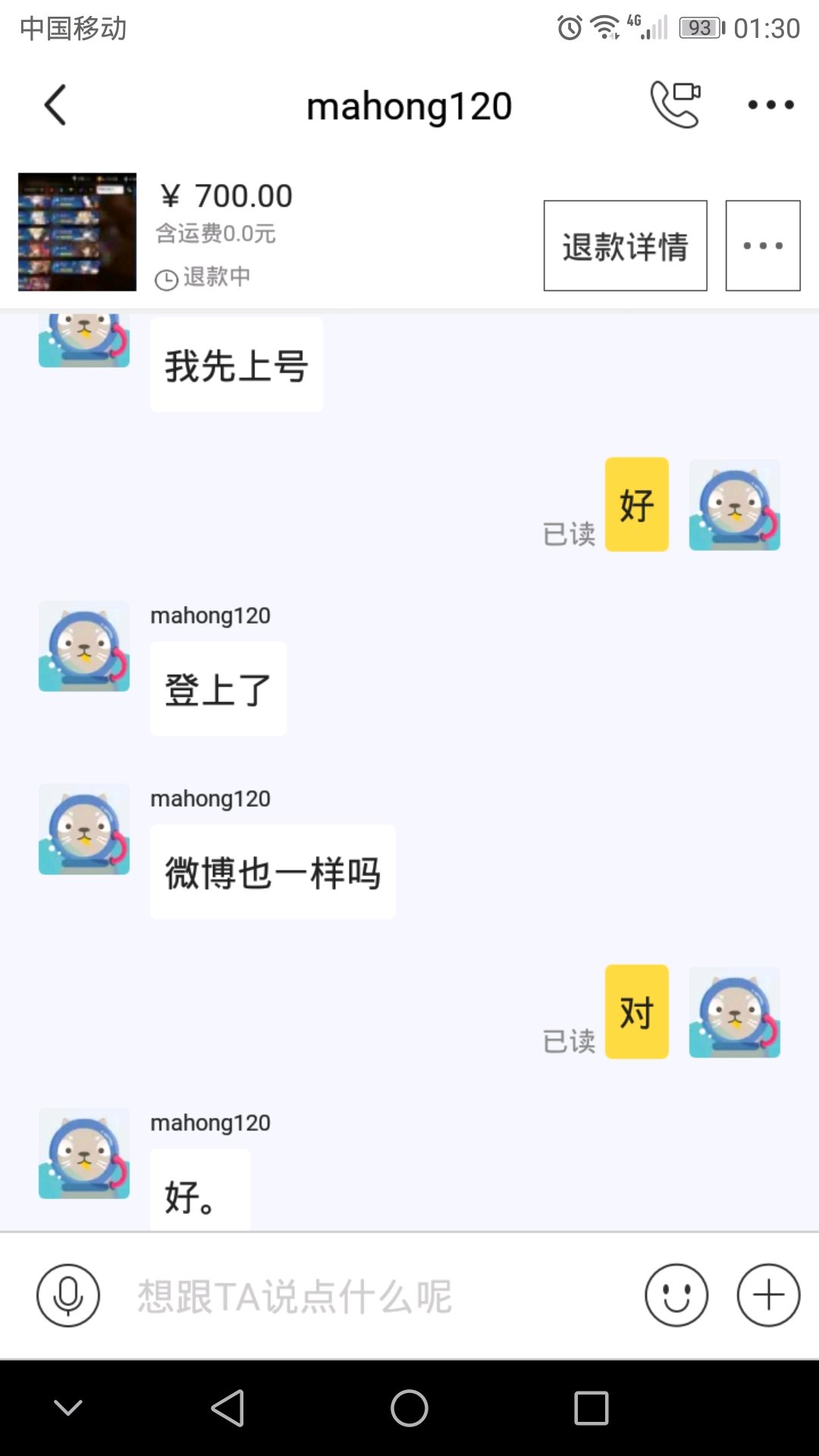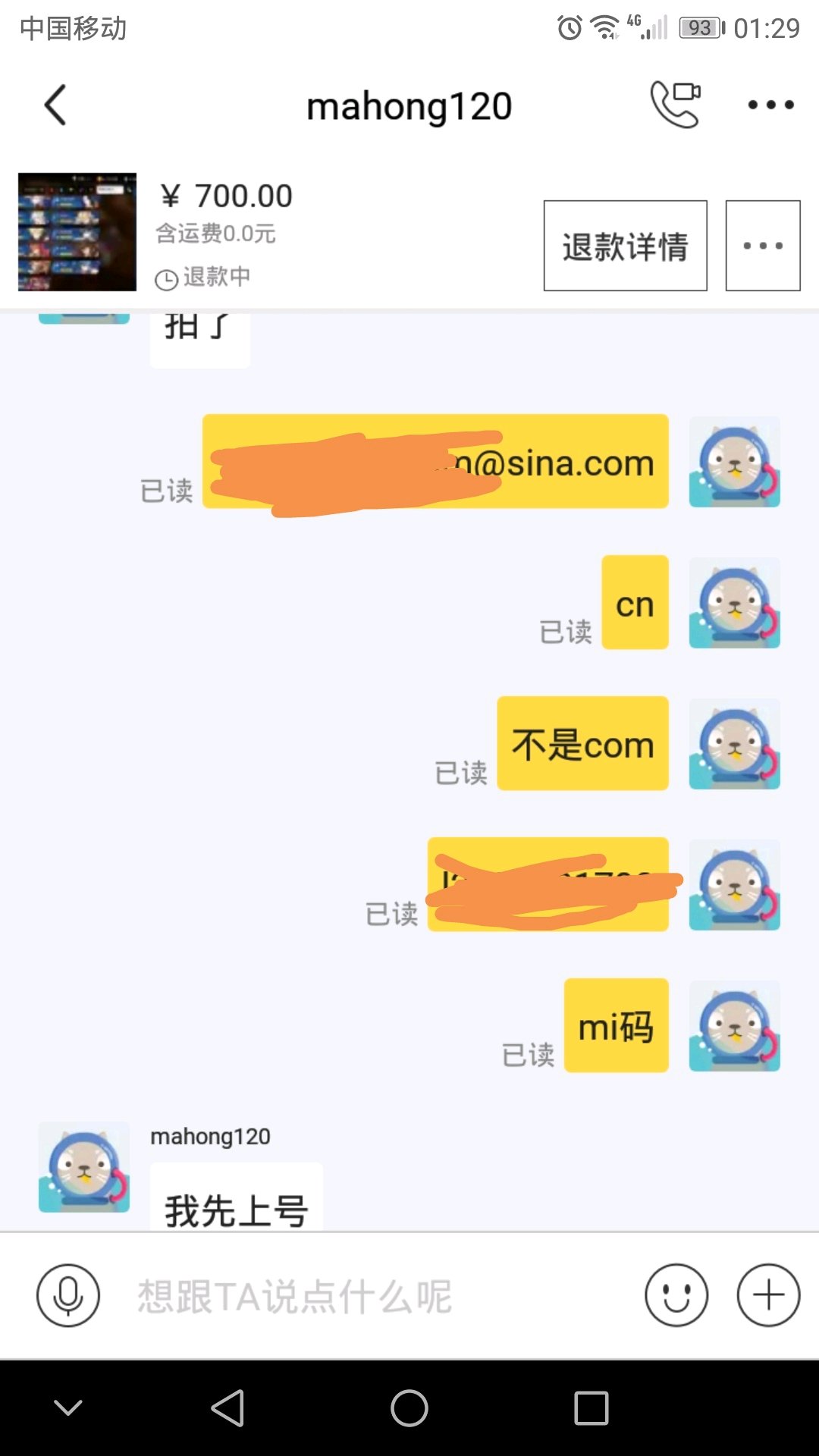 我号什么都给他了,邮箱也帮他换手机了,我还没发货就退款???