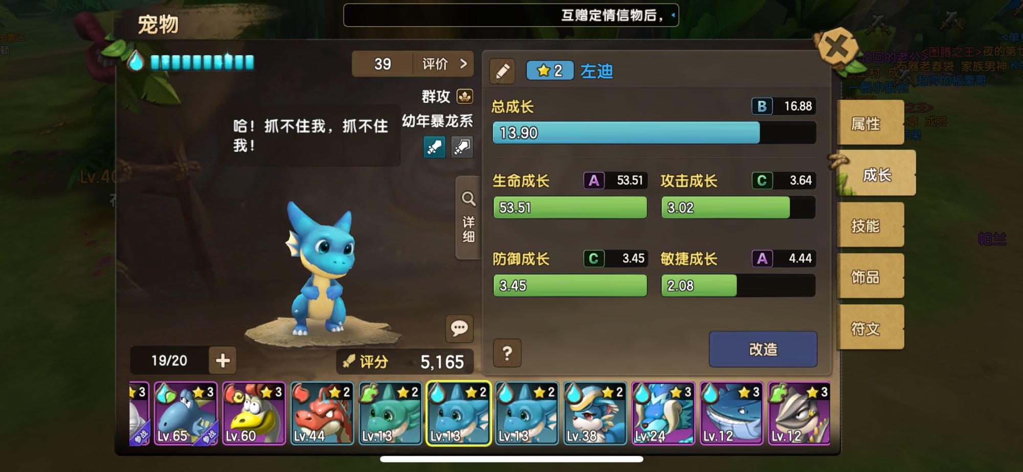 我觉得吧,你这个别投入资源了,虽说是极品,但是目前阶段没有用,现在遍地火宠,这个风属性的上场被锤成皮皮怪,等于减去30%的属性。