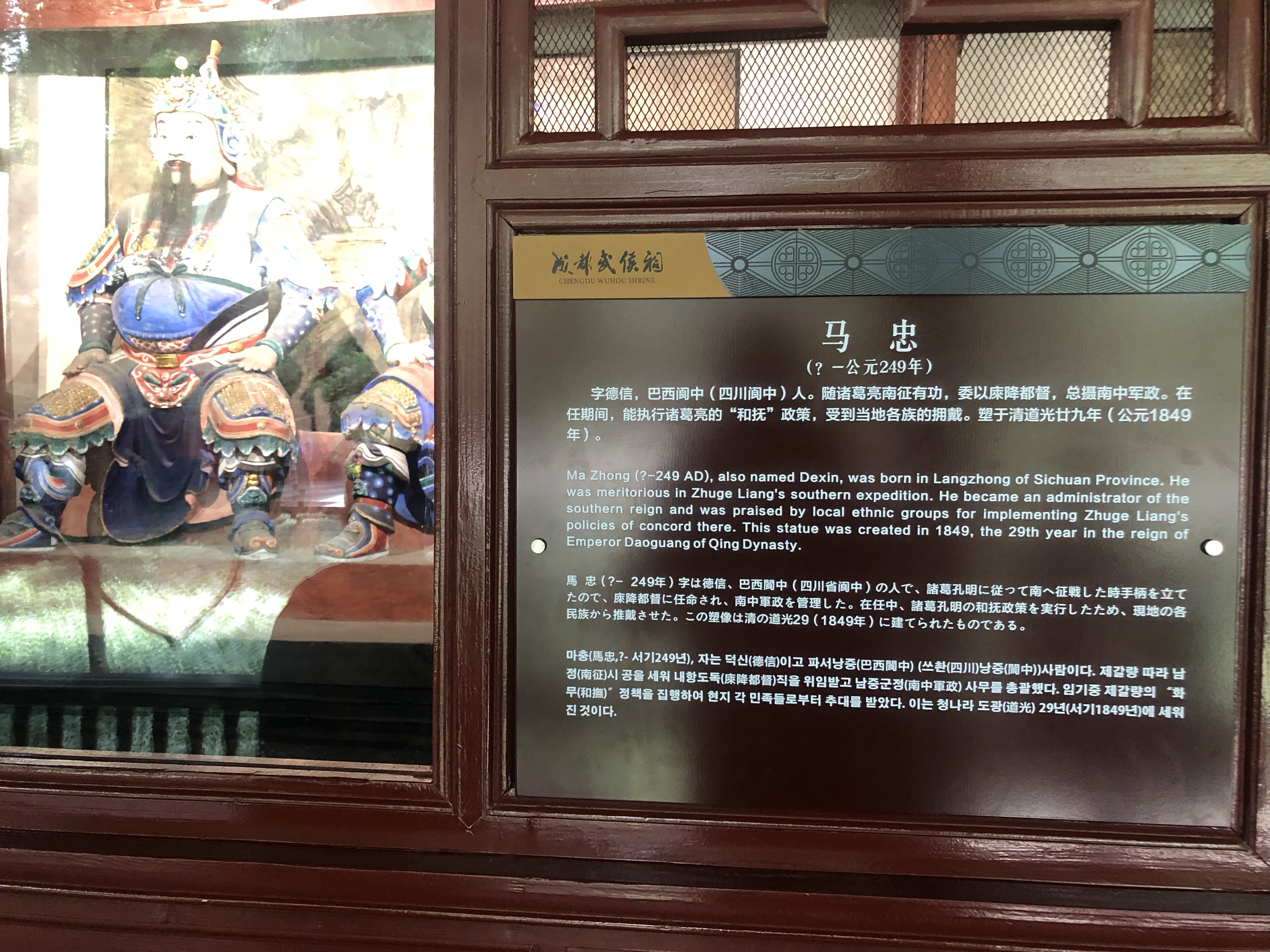 马齐塑像阆中桓侯祠张飞旁边