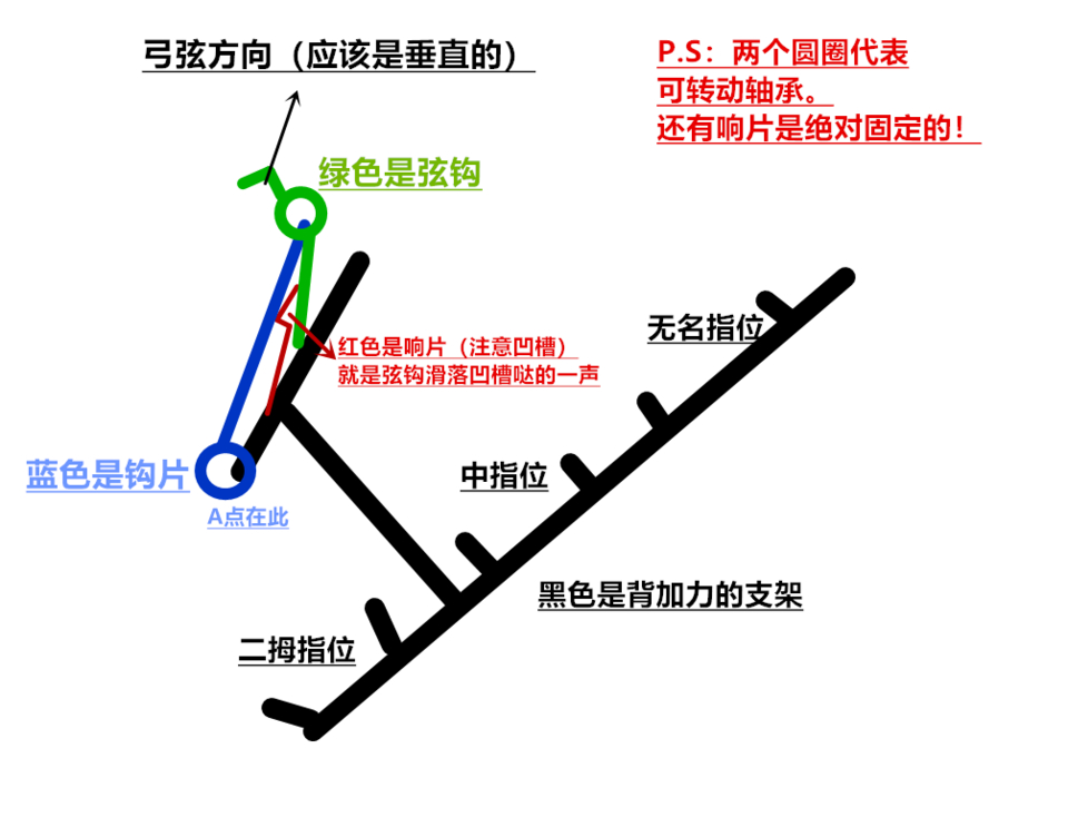 背加力back tension release 也有hinge release之称,专家们会对这两种进行细分。其中,广义上的背加力包括hinge release(可通过转动+夹背撒放)和resistance release(仅可通过夹背撒放)。这里我们就讨论最常见的背加力——hinge release,因为前辈们基本都写的hinge release,这个掌握好了另外一个技术要点是一样的。属于射准竞赛非常常用的撒放,因其拥有“most consistent”(动作一致性最高)的属性,以及克服“黄心病(就是你在黄心附近摇晃的时候犹豫不决,不知道什么时候扣扳机)”的优点。大赛中,基本没人用腕撒(十个里面有一个吧,3D赛的话),握撒和背加力居多。拉斯维加斯基本背加力。