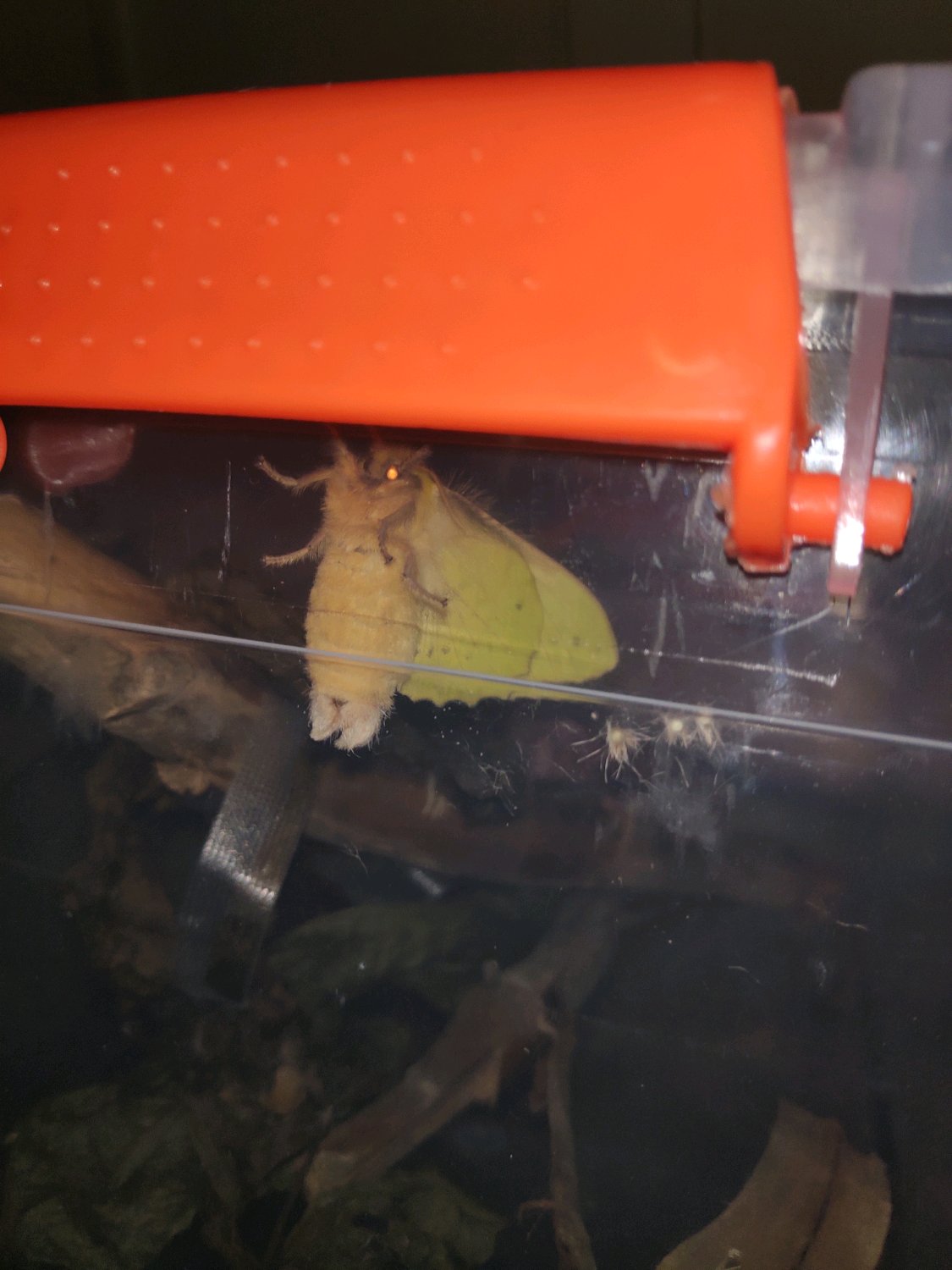 温度23-26度蛹期22天,今早发现羽化,壁上即产卵(应该是)。