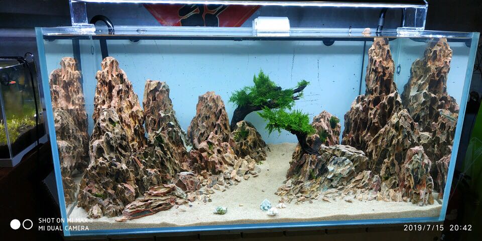 我买的60*45的汉江超白缸,牧梵进出水,朋友给的创星滤筒(本来想买伊罕滤筒),因为我不玩阳草,所以尼特利灯,水草泥和二氧化碳罐都省了,买了一套朗峰鱼缸灯,在鱼市买了几块松皮石和水草,就养了几十条孔雀也挺好。