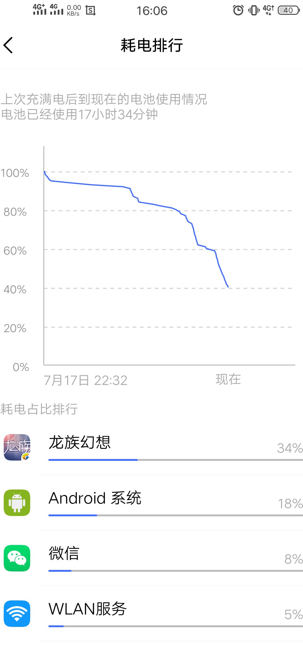 自从上周给我强制更新到40后,我就不相信什么提升续航之类的鬼话。