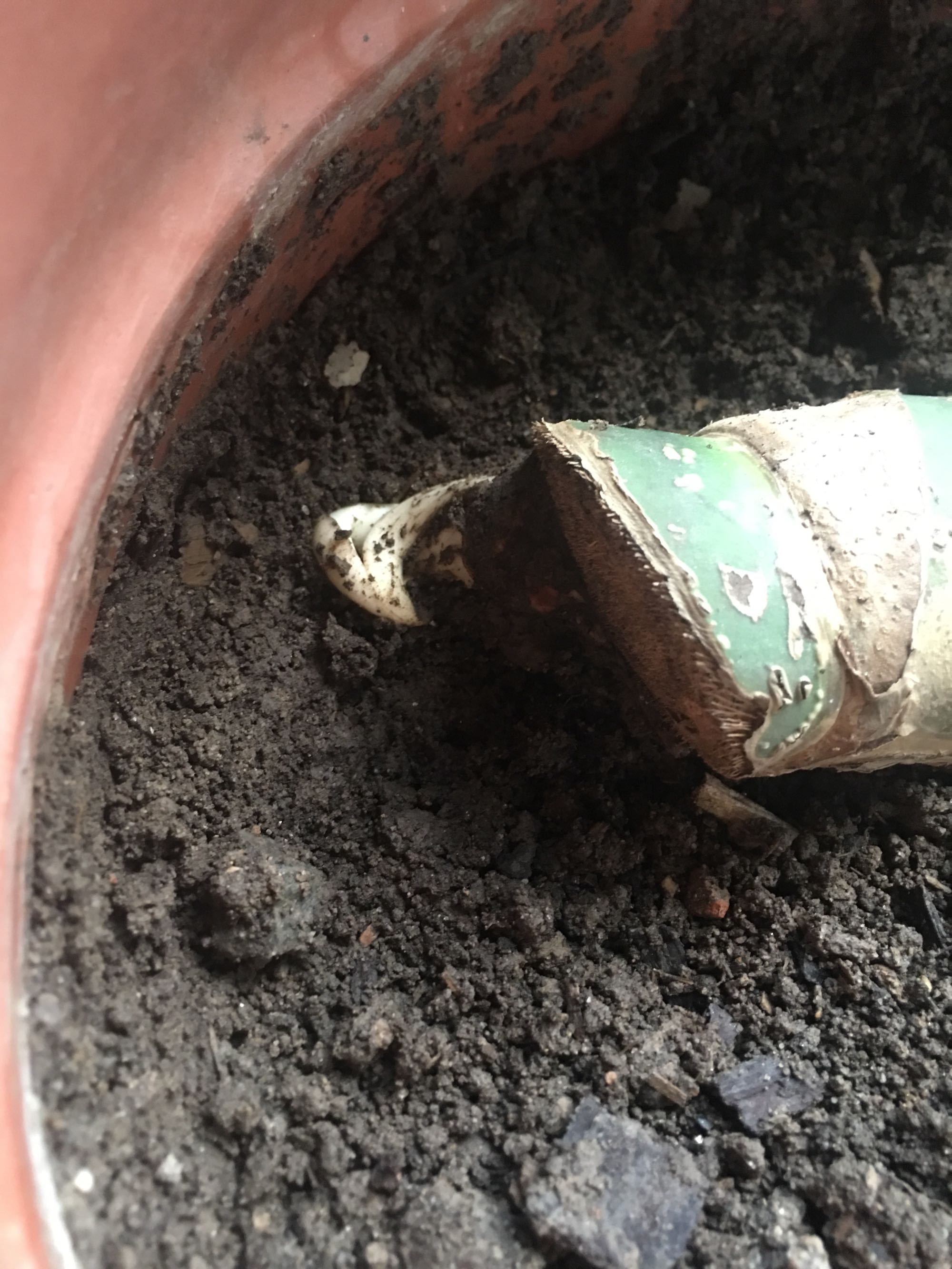 这段老桩由于之前埋的太深,一直没发芽,今天忍不住挖开来看看,