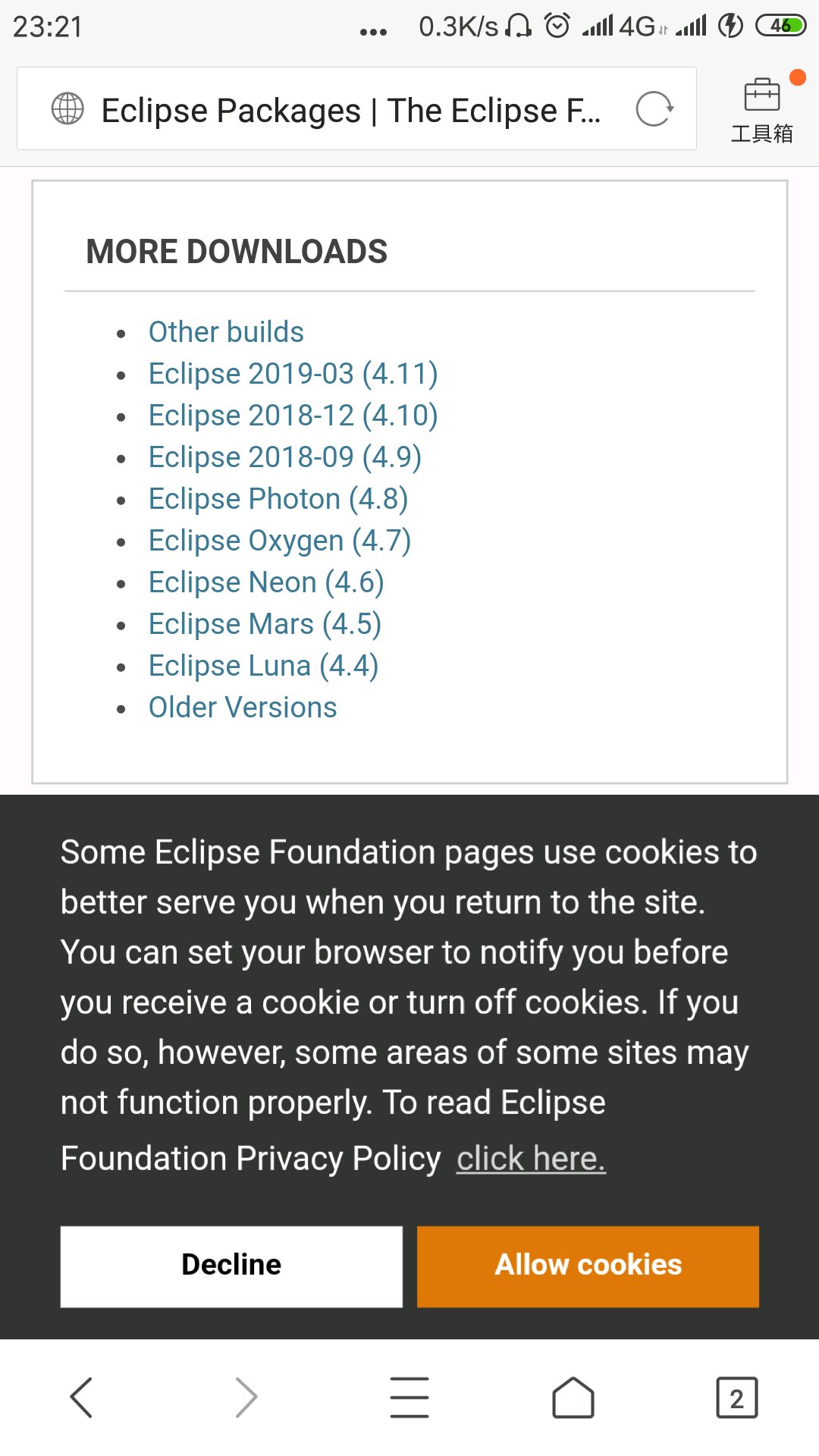 如果你是用电脑浏览器打开,那么右侧栏目MORE DOWNLOADS有一个 Eclipse 2018-09(4.9) 版本链接