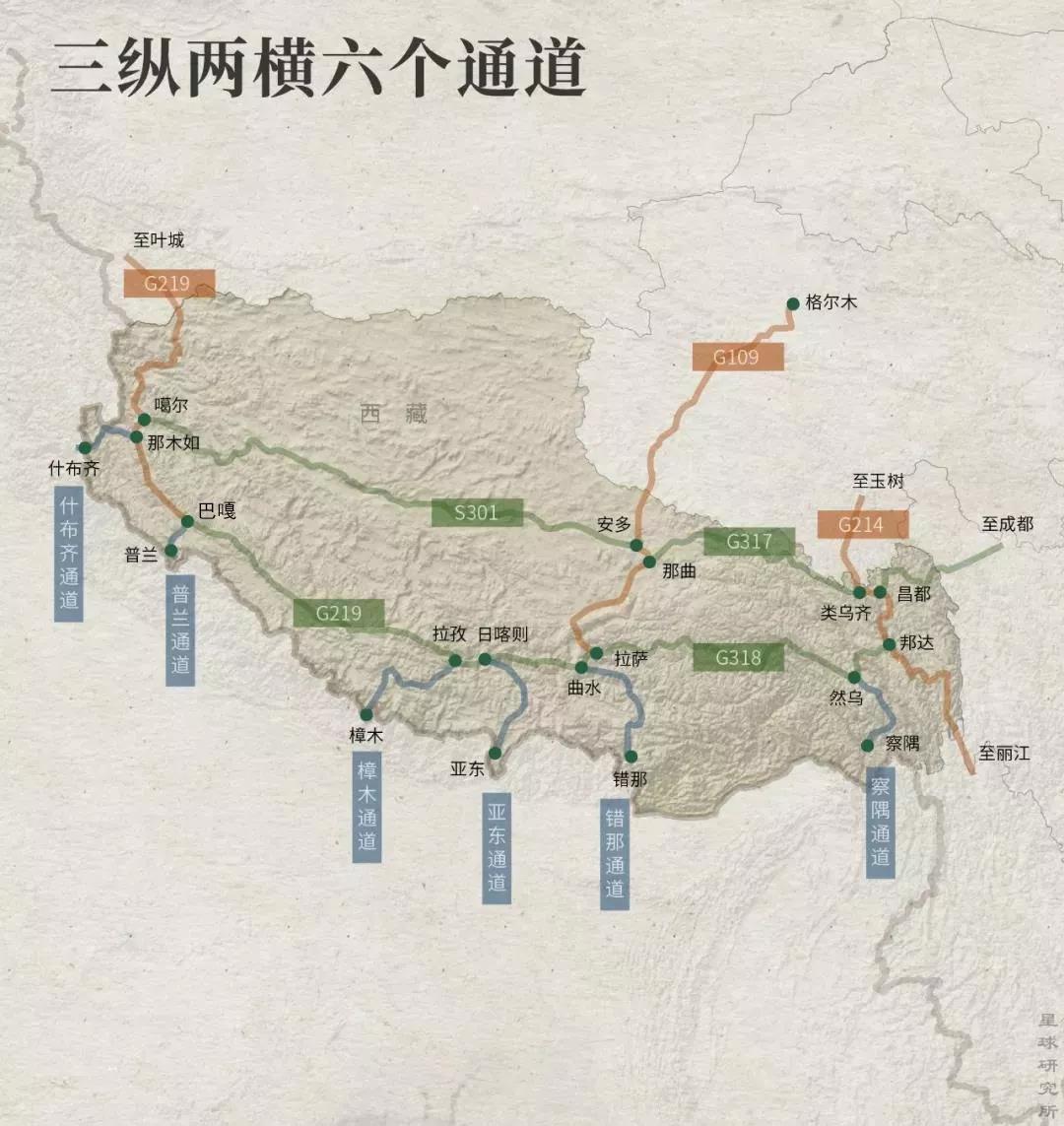 再来看看317等几条国道的海拔高度落差: