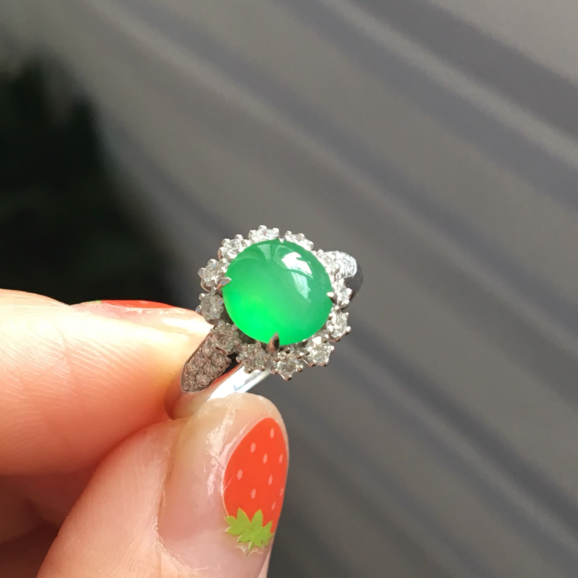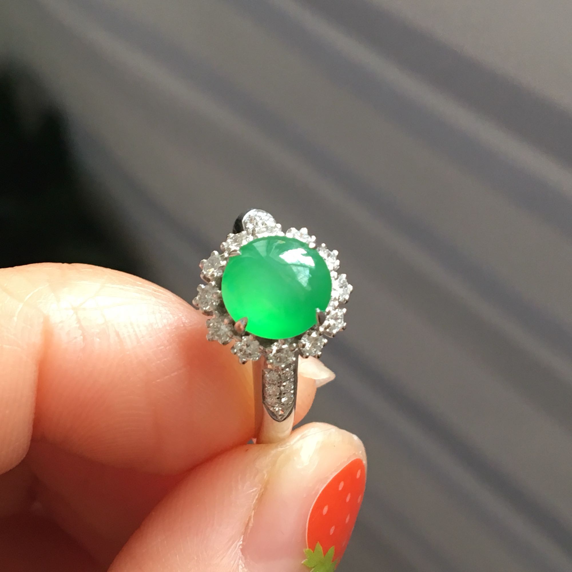 满绿戒指,色辣辣的🌶️,圈口19.5 加上金圈圈口会小一点儿,金圈选择性要,尺寸4.6*3.2*19