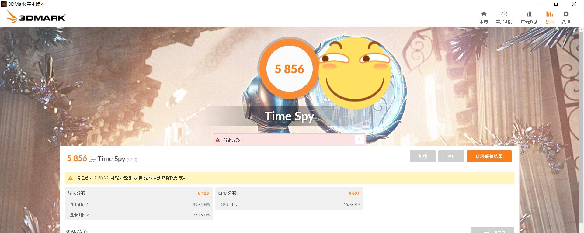 差八九百总是有的。。我跟这兄弟配置一模一样六千七百多。。他这分数绝对不对