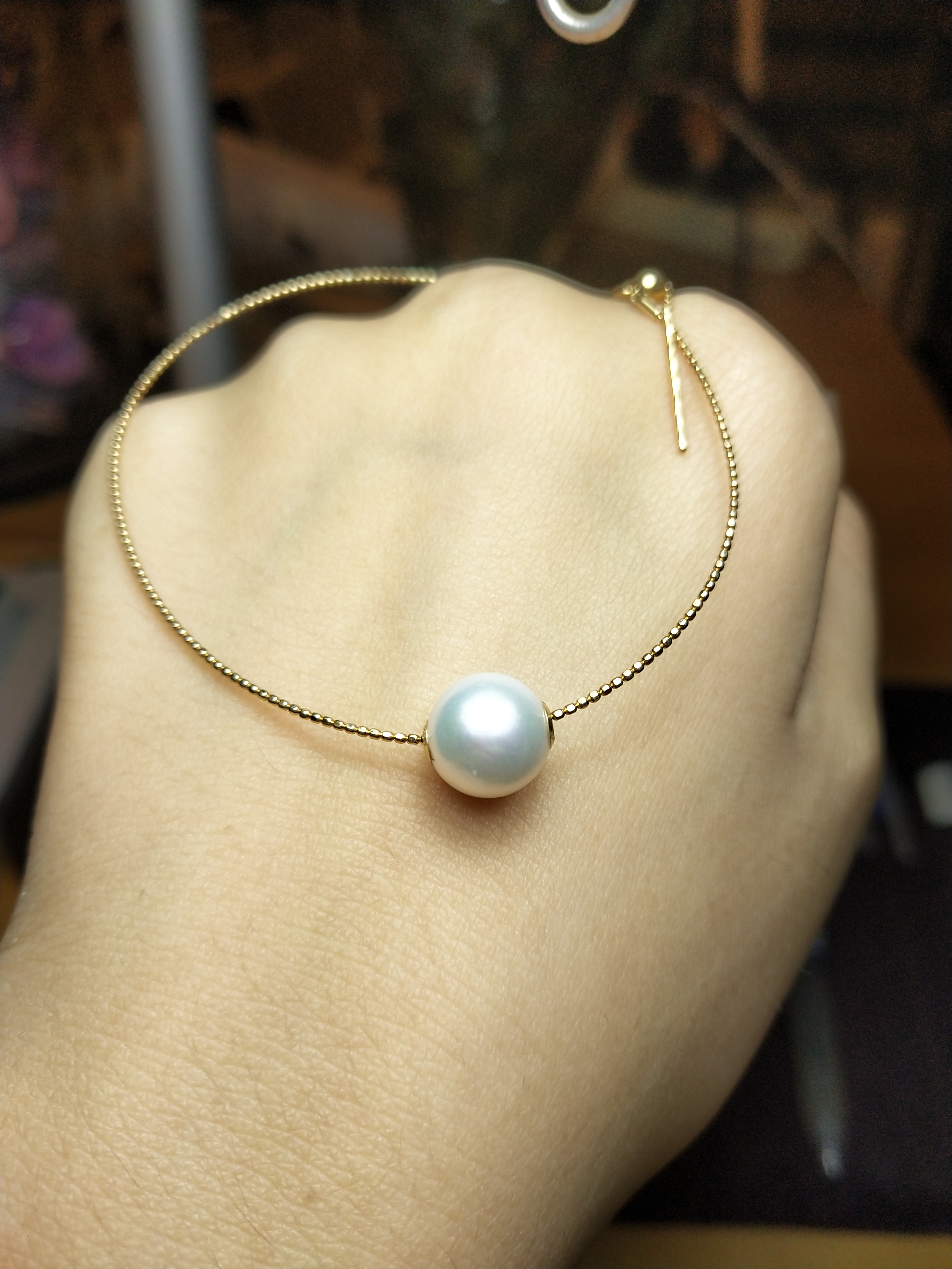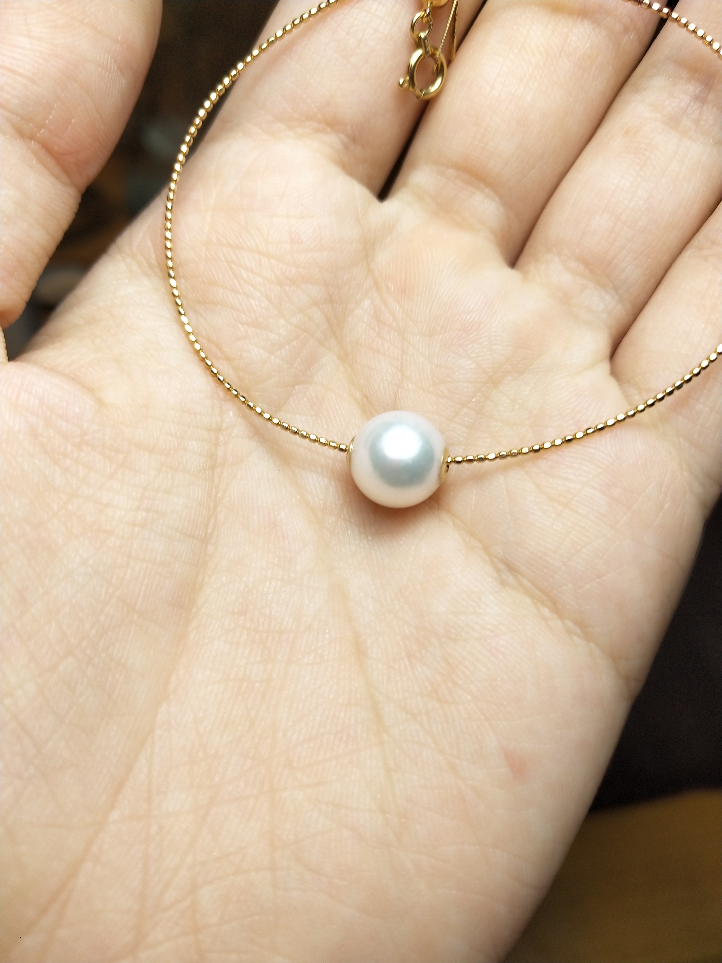 图一9-9.5mm,18k金路路通akoya珍珠,青白光超美,喜欢底价拿走