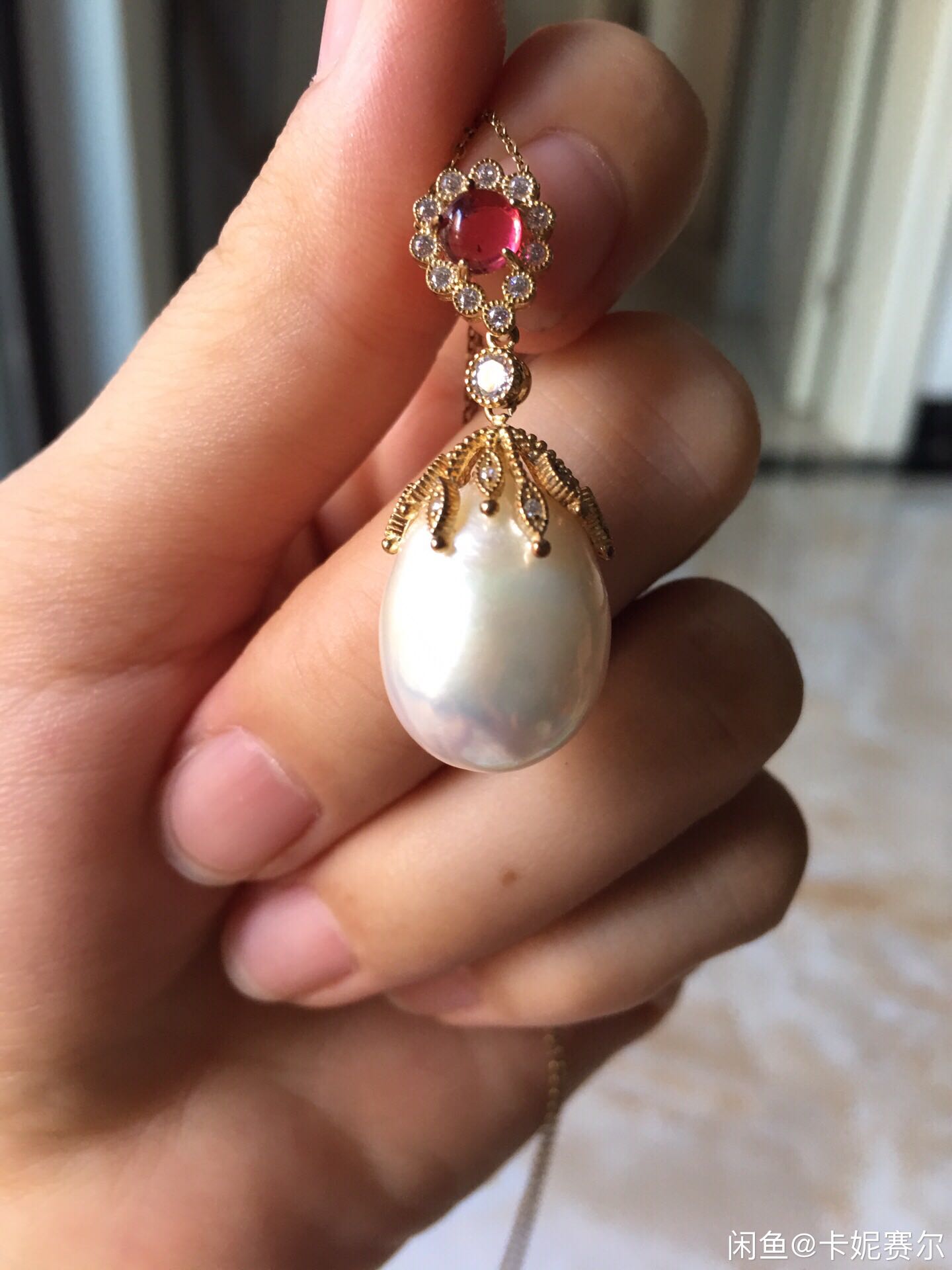天然巴洛克炫彩紫色珍珠吊坠 这颗巴洛克超级炫彩珍珠,粉紫色,偏紫,皮光真的是太好了,然后没办法对焦,皮光这么好,颜色这么炫,然后尺寸也这么大的,现在都很少见了。尺寸很大,17mm*15mm。这颗是2016年买的。亏粗780