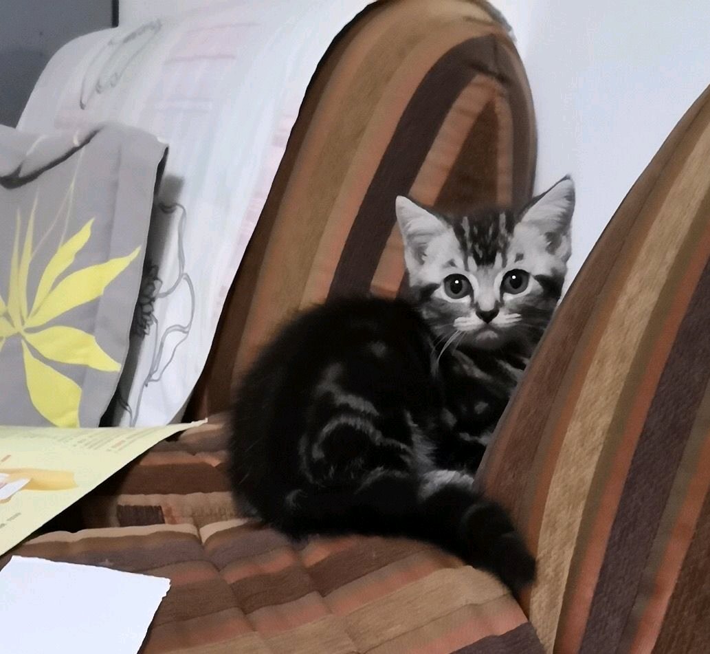 美短是有可能出这么黑的的,不要慌,不一定是串。但是,这个品相不能繁育,花纹基本都没了