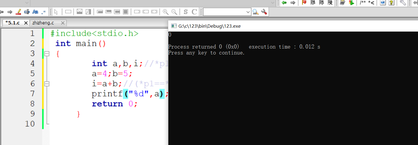 zhizheng.c那个文件关了,当前要运行的文件重新编译,运行