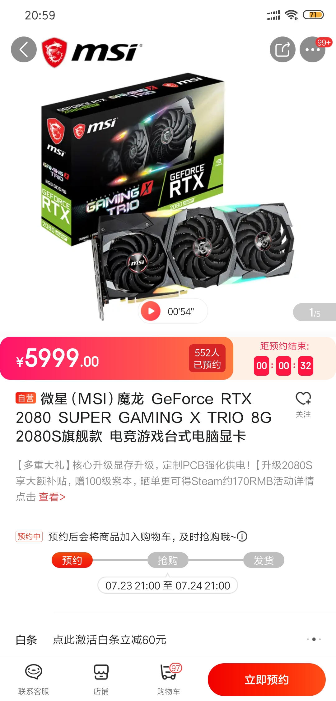 京东首发秒杀就是5999,但是瞬间售罄,我没抢到