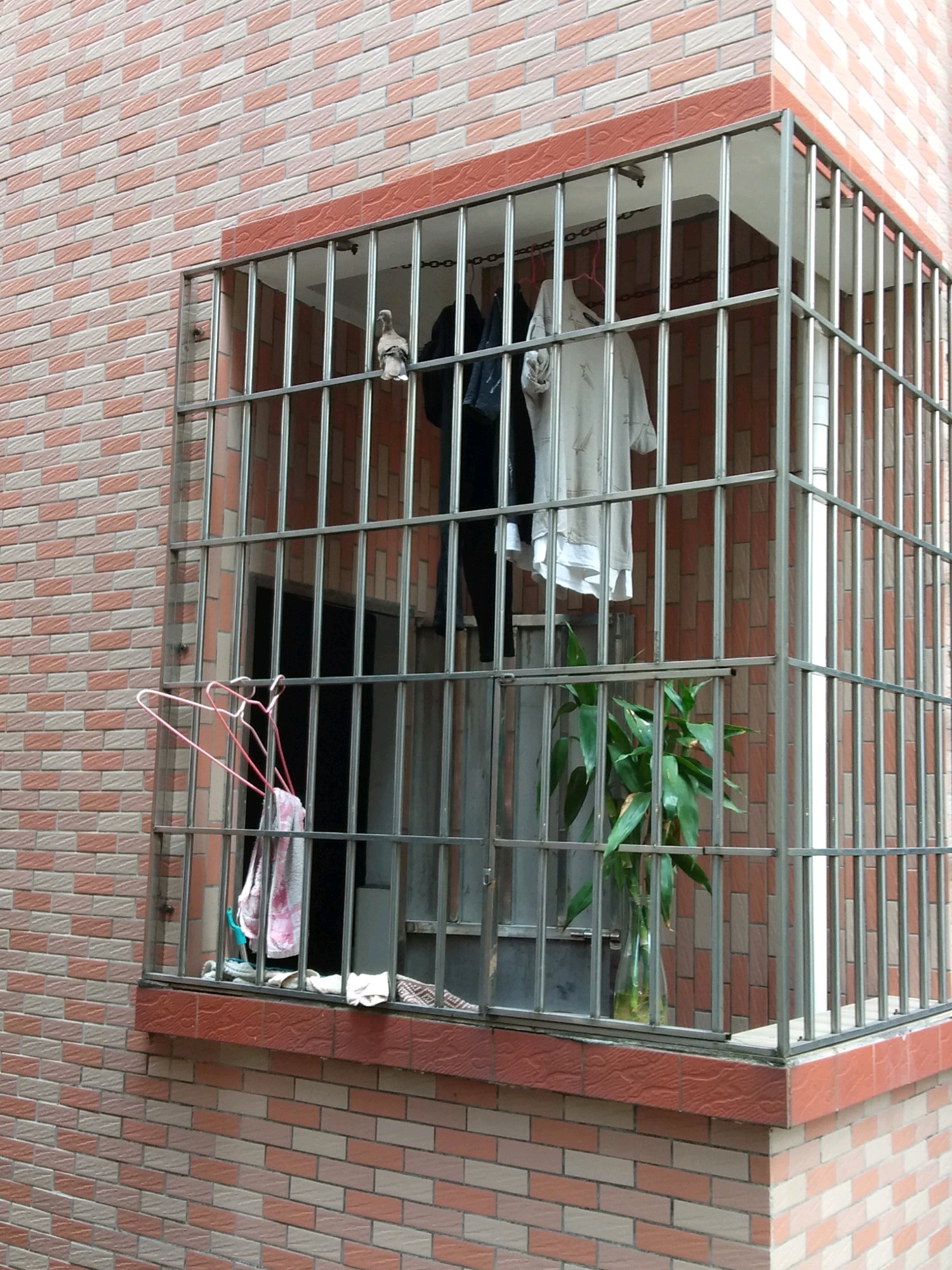 我的今天也跑了一个,飞到对面邻居的窗户上面了,还好用食物又引诱回来了