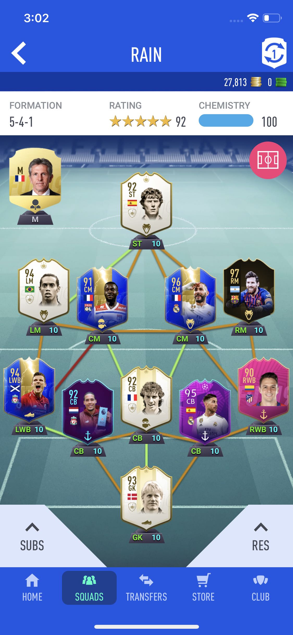 我有张不可交易的,中场万金油(鸡肋),很能混,但是体力不够打首发,替补又没啥特点
