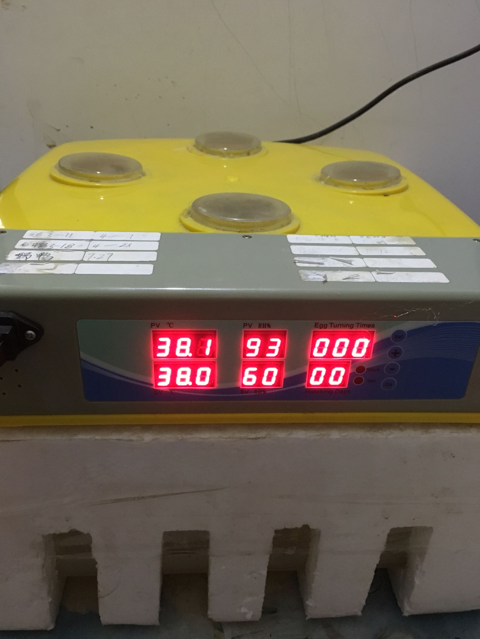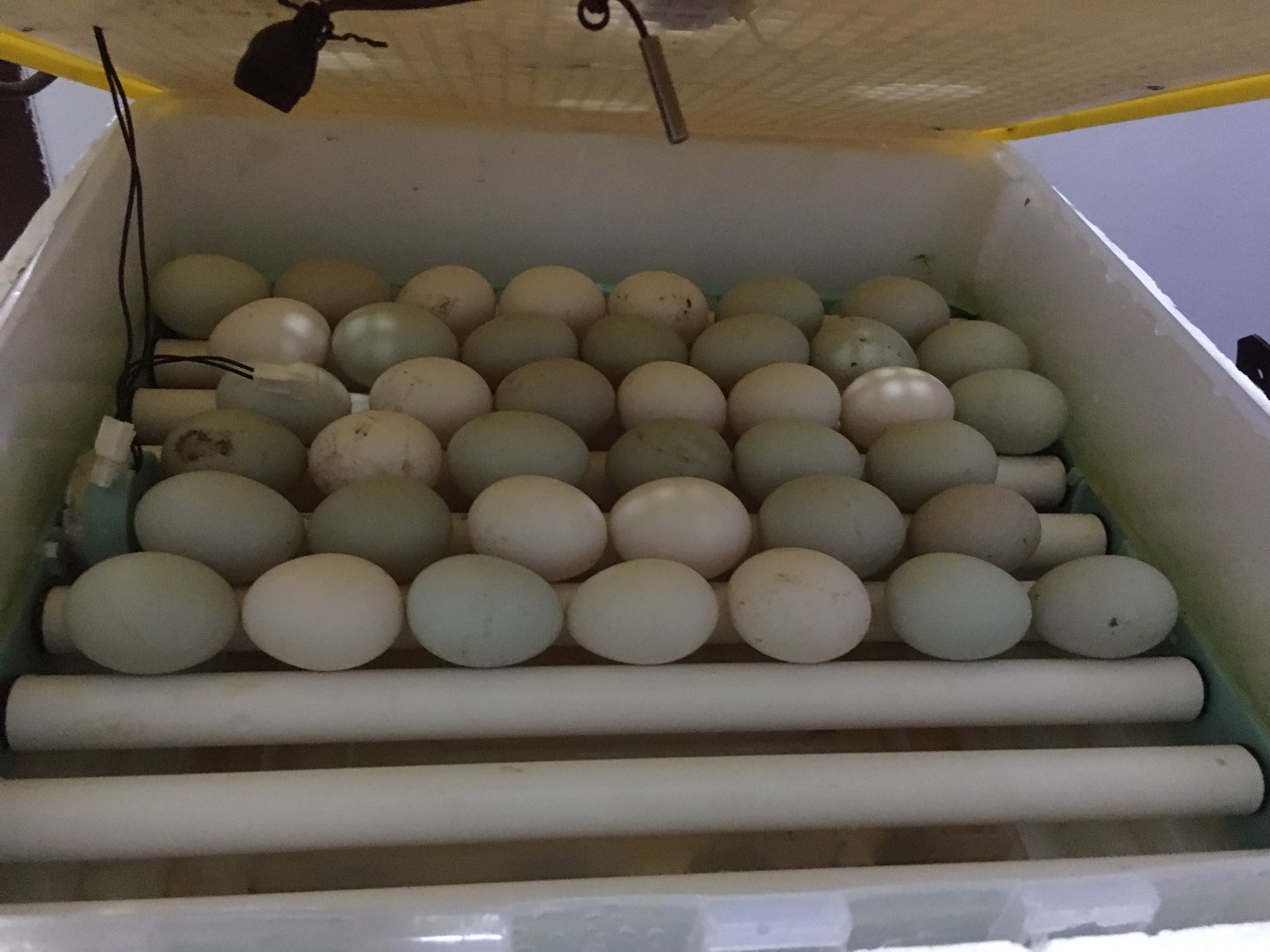 孵友不放心,我也不放心,卖本地食用也可惜,但食用与孵化价格还是2块没变!在低肯定都自己吃了。所以索性都自己孵了,总的40个,畸形的也全孵,5天后报告受精率。用的全自动孵化机,恒温38°孵化,开启懒人模式