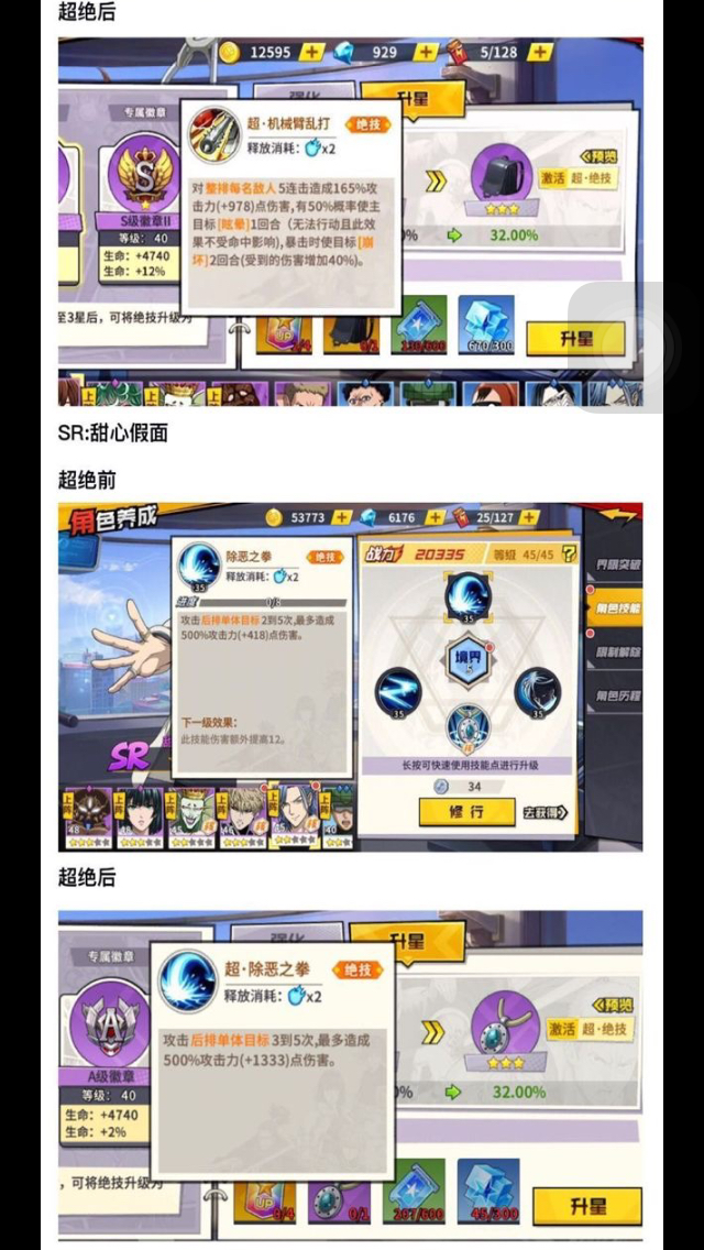展示一下部分角色的超绝技能说明,多图预警,可能部分大佬看过了,还是分享给大家