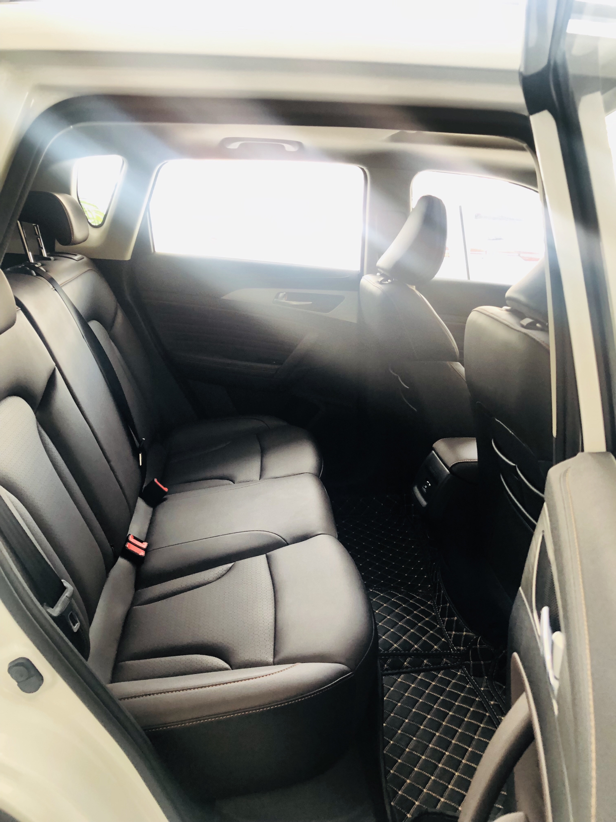 坐进来以后,后排的腿部空间非常的充裕,坐三个人的时候,横向的空间并不会显得特别挤,当然也是肩挨着肩,但是会舒适性上会比老款要舒服不少。然后还有一个非常细心的点,后排座椅上会预留了很多的储物格,还有缝线处理。
