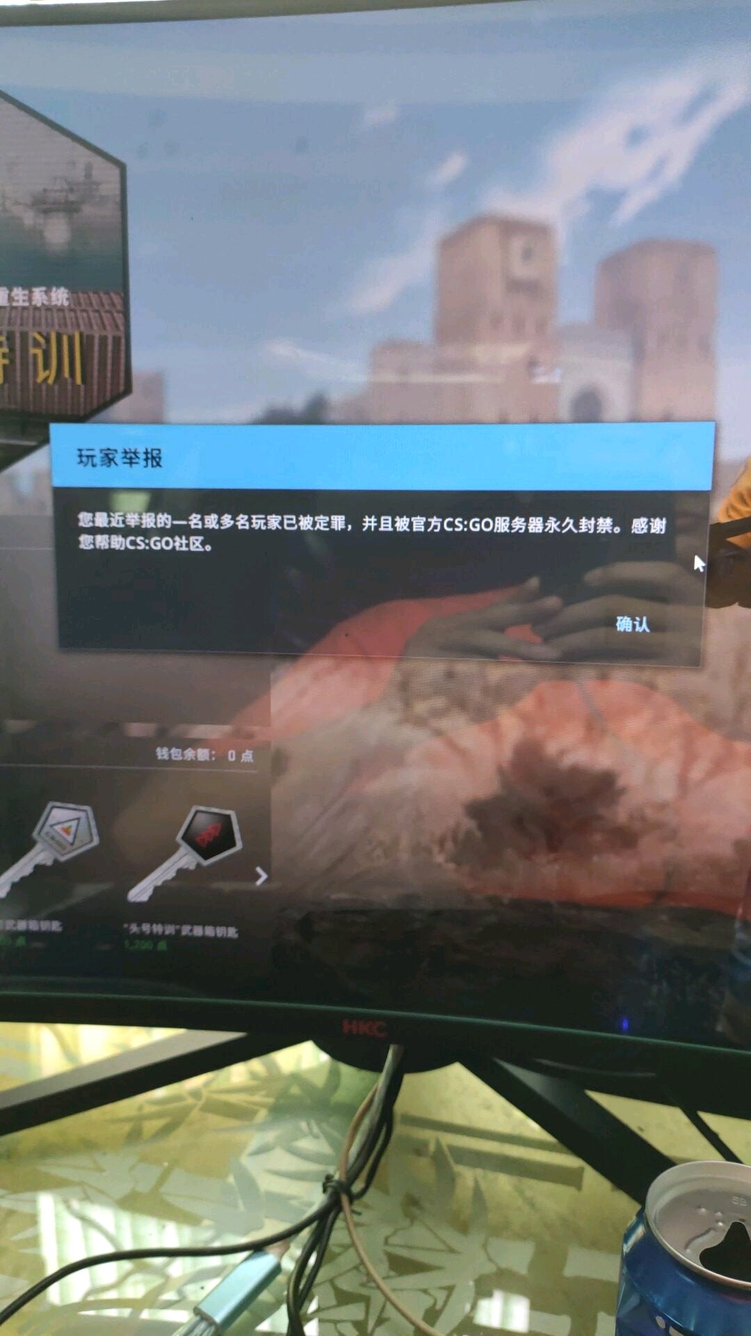 如果你被封号了,主界面上方是红色的vac字样。你收到的蓝信是举报别人开挂,别人被封号的反馈