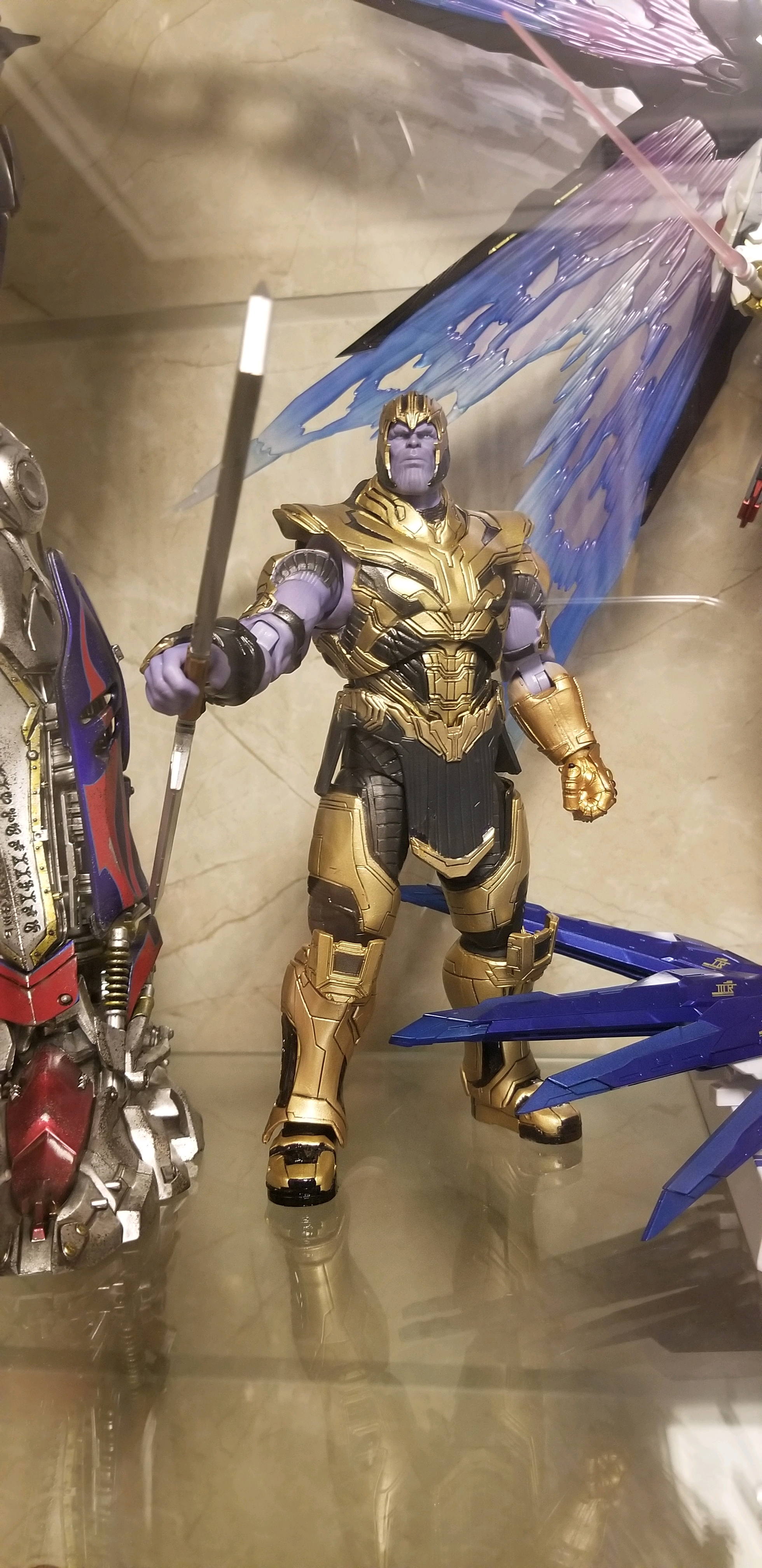 我感觉吧离几米外看区别不大,但是这灭霸拿着在眼前看,还是得正版shf好一些,国产的我放到现在虽然没松,但是头雕确实差那么点意思,而且铠甲不如shf正版精致