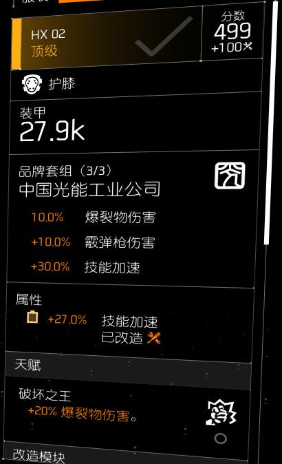 0%技能加速,词条洗技能加速 +27%,可以从装备组的膝盖中校准过来,但多数的中国光膝盖校准上限是24%,能洗27%的比较少