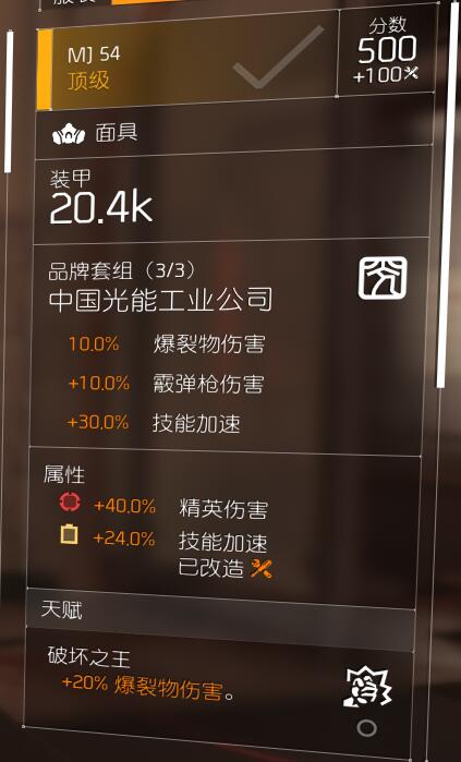 面具选择中国光 精伤+技能加速,个人不推荐双电,因为炸裂物伤害似乎吃精英伤害