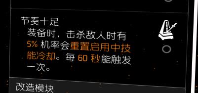 随身武器带一个三天赋是节奏十足的,5%几率重置技能cd,随缘触发。