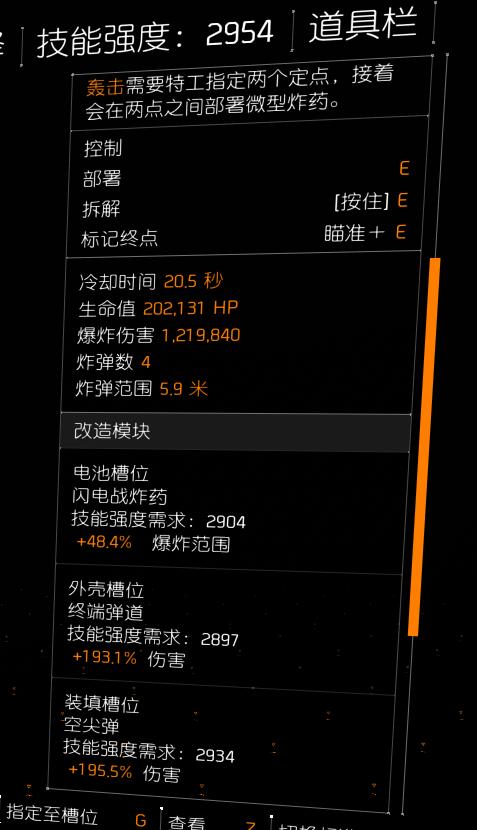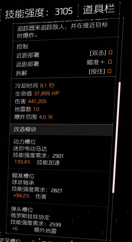 无人机面板120W4个炸弹,但20.5s的CD。插件双伤害一范围。当然也可以选择双伤害一加速减少5秒左右的cd,但这样伤害范围会减少