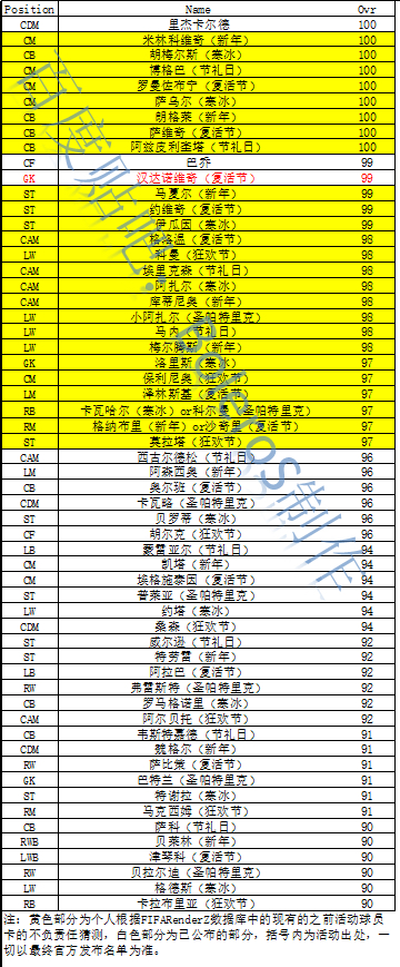 也可能不是回溯,我在自作多情,但我真的想不出现有的名单里的球员有什么理由出卡了