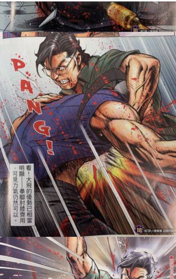 尾腳踢倒對方。 方盛滿四腳朝天之際,陳浩南快速騎上對方並狂轟,打得方盛滿毫無還手之力。